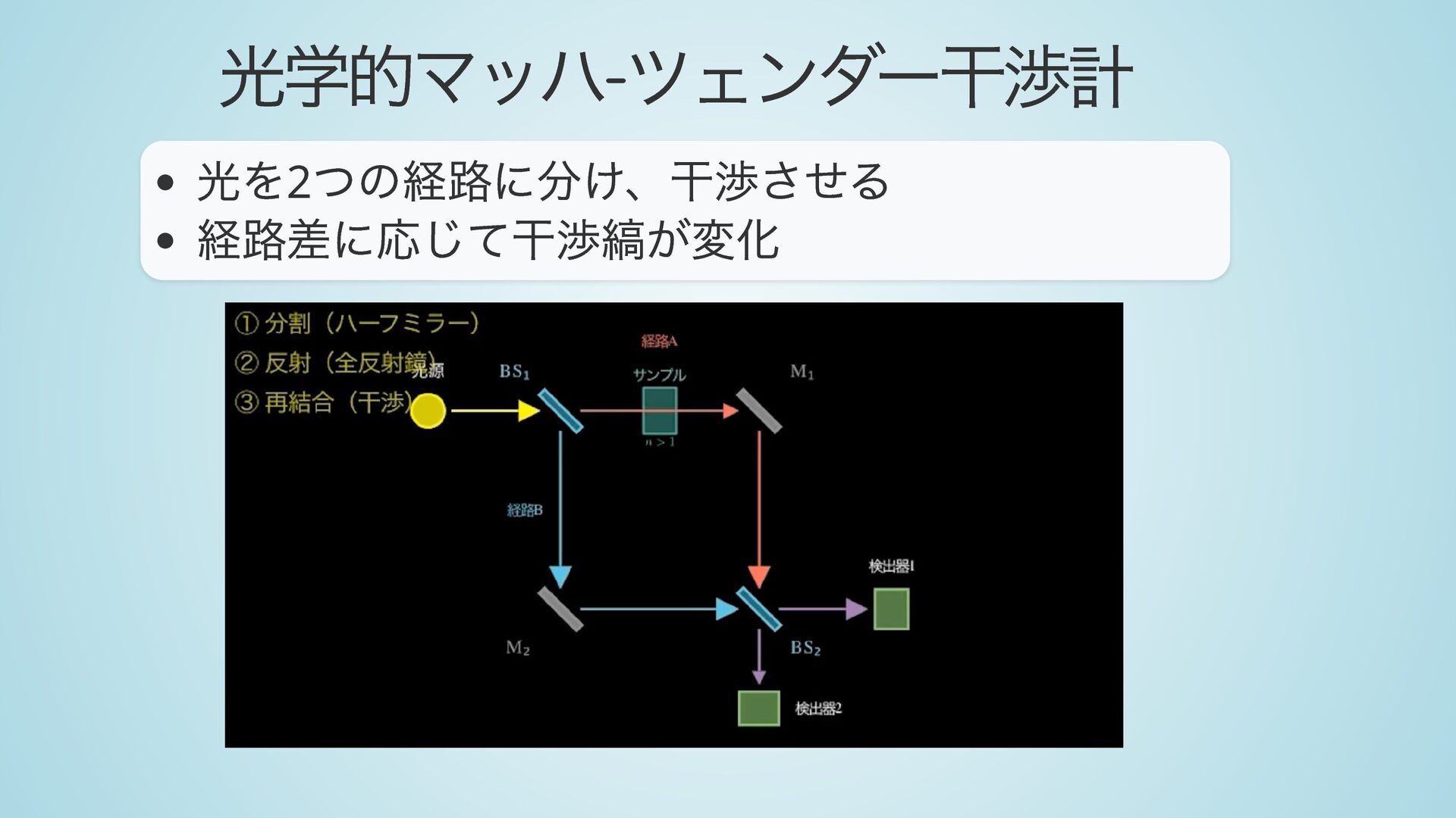 ・ 原子干渉計の原理(ラマン遷移、マッハ-ツェンダー型干渉計)