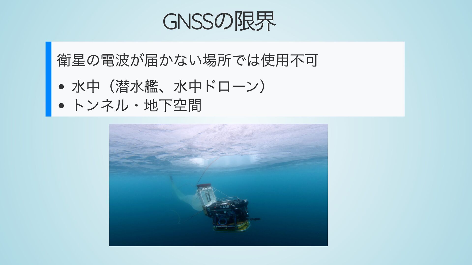 ・ GNSSの限界と脅威(水中・地下での使用不可、スプーフィング/ジャミング)