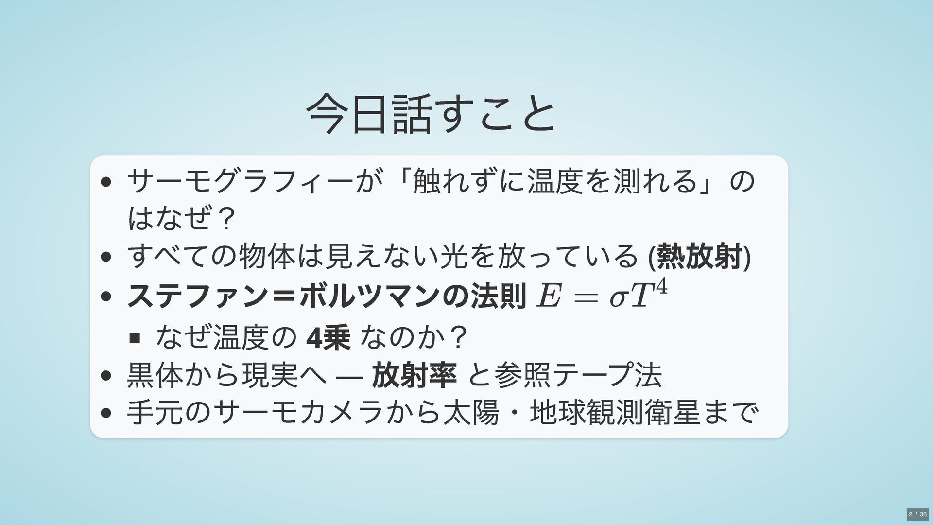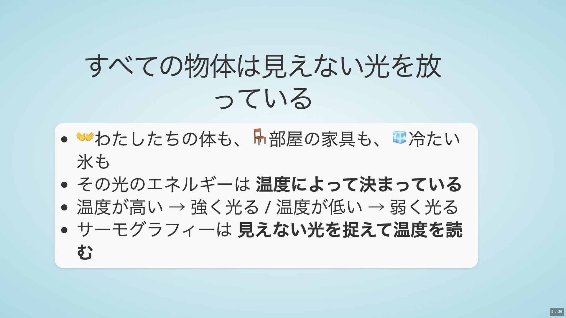 を、手元のサーモカメラから宇宙スケールまで解説します。