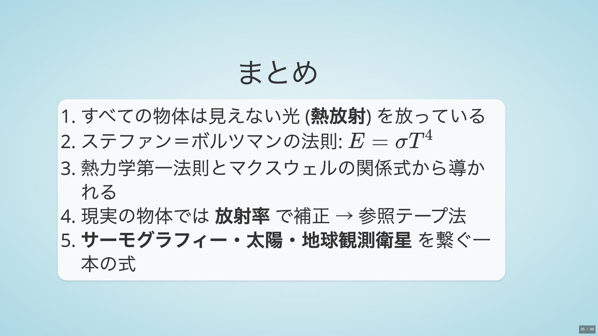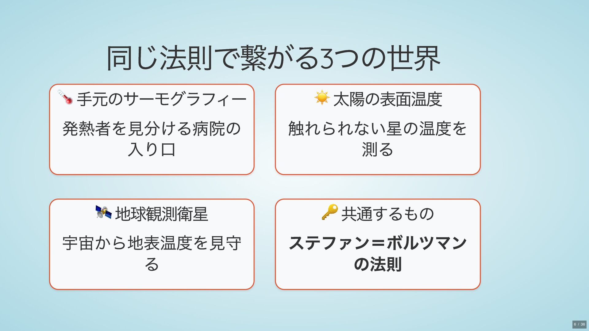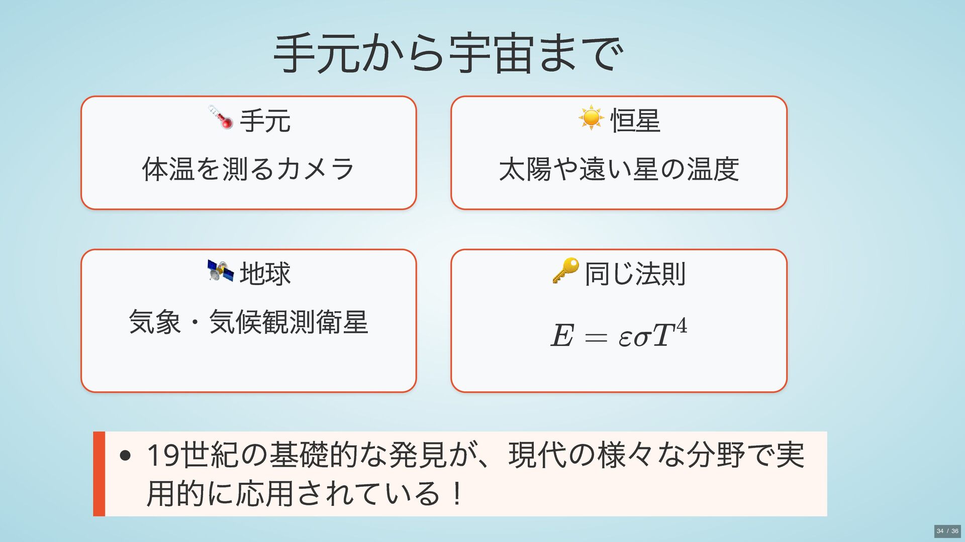 - 太陽の表面温度推定から地球観測衛星まで、同じ一本の式で繋がる世界