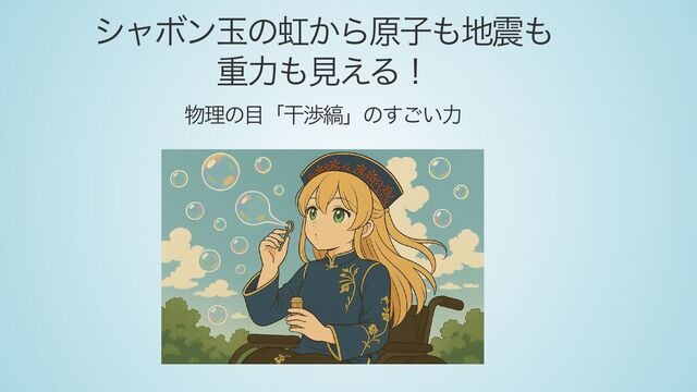 シャボン玉に見える虹色の模様は、単なる光の遊びではなく、原子から地震、そして宇宙の重力波までを「見る」ための物理学の根本原理につながっています。