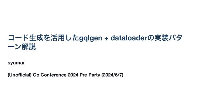 事前知識については、下記の発表資料を参考にしていただければと思います! https://speakerdeck.com/syumai/xonokotosheng-cheng-tegqlgennodataloadershi-zhuang-wole-nisitahua