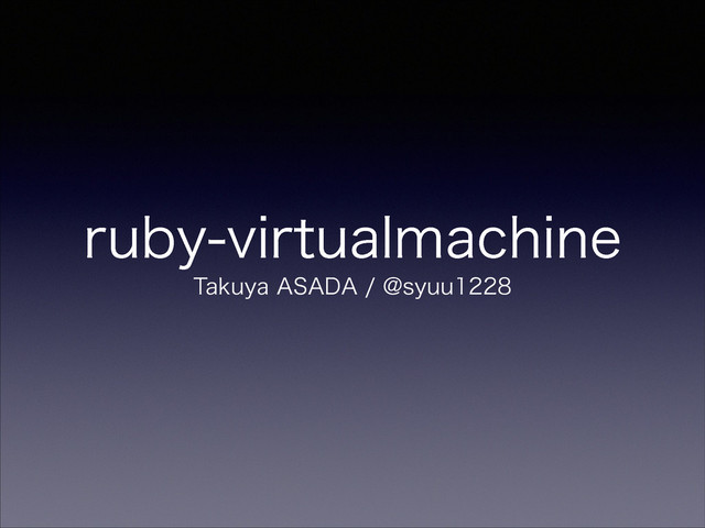 ruby-virtualmachine • https://github.com/syuu1228/ruby-virtualmachine • https://rubygems.org/gems/virtualmachine