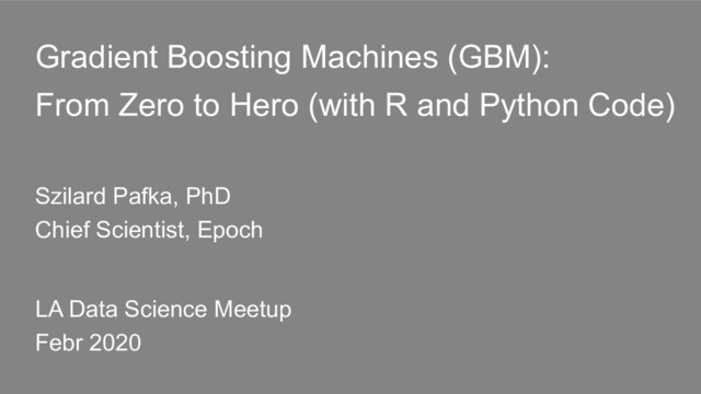 Gradient Boosting Machines (GBM): From Zero to Hero (with R and Python Code) - LA Data Science Meetup - February 2020