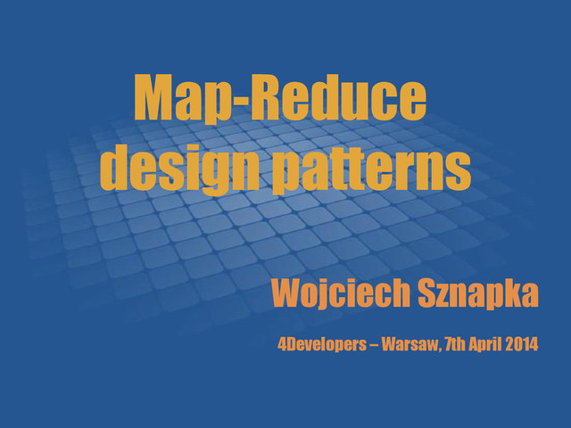 Domination of relational databases and SQL, caused that in developers think about operating and analyzing data as of design patterns. Unfortunately, for large sets of data relational database could be insufficient. Luckily we aren't doomed. Thanks to non-relational Big Data tools, such as combination of storage and computations, which is Apache Hadoop, we can analyze giant data sets in easy and effective fashion. It requires changing mindset from SQL to Map-Reduce and being familiar with few patterns, which helps solve typical problems, which we used to cope with SQL.