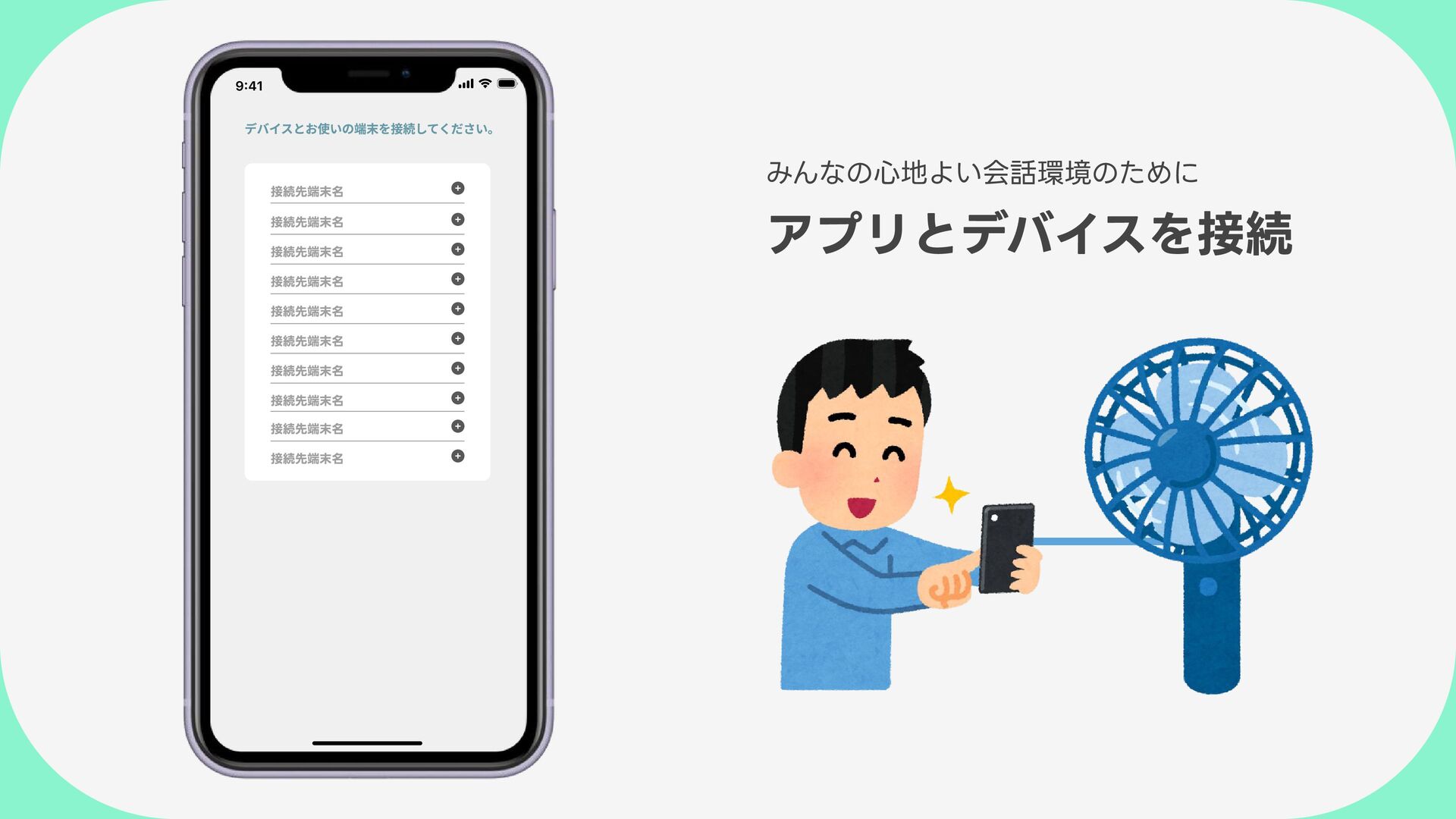 アプリとデバイスを接続 みんなの心地よい会話環境のために 接続先端末名 接続先端末名 接続先端末名 接続先端末名 接続先端末名 接続先端末名 接続先端末名 接続先端末名