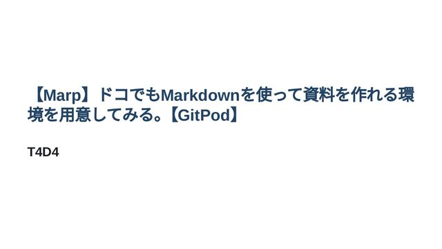 【Marp】ドコでもMarkdownを使って資料を作れる環 境を用意してみる。 【GitPod】 T4D4
