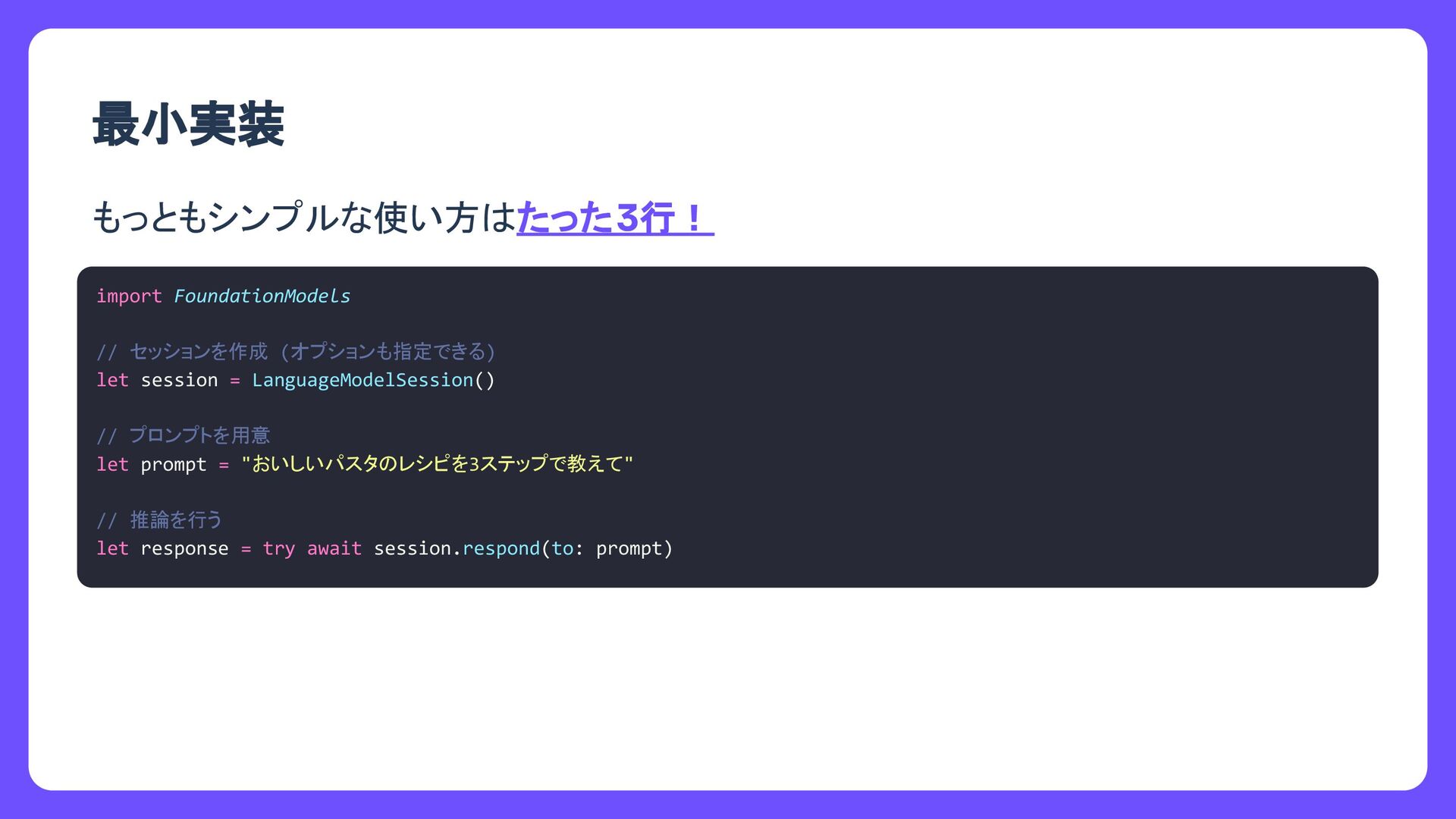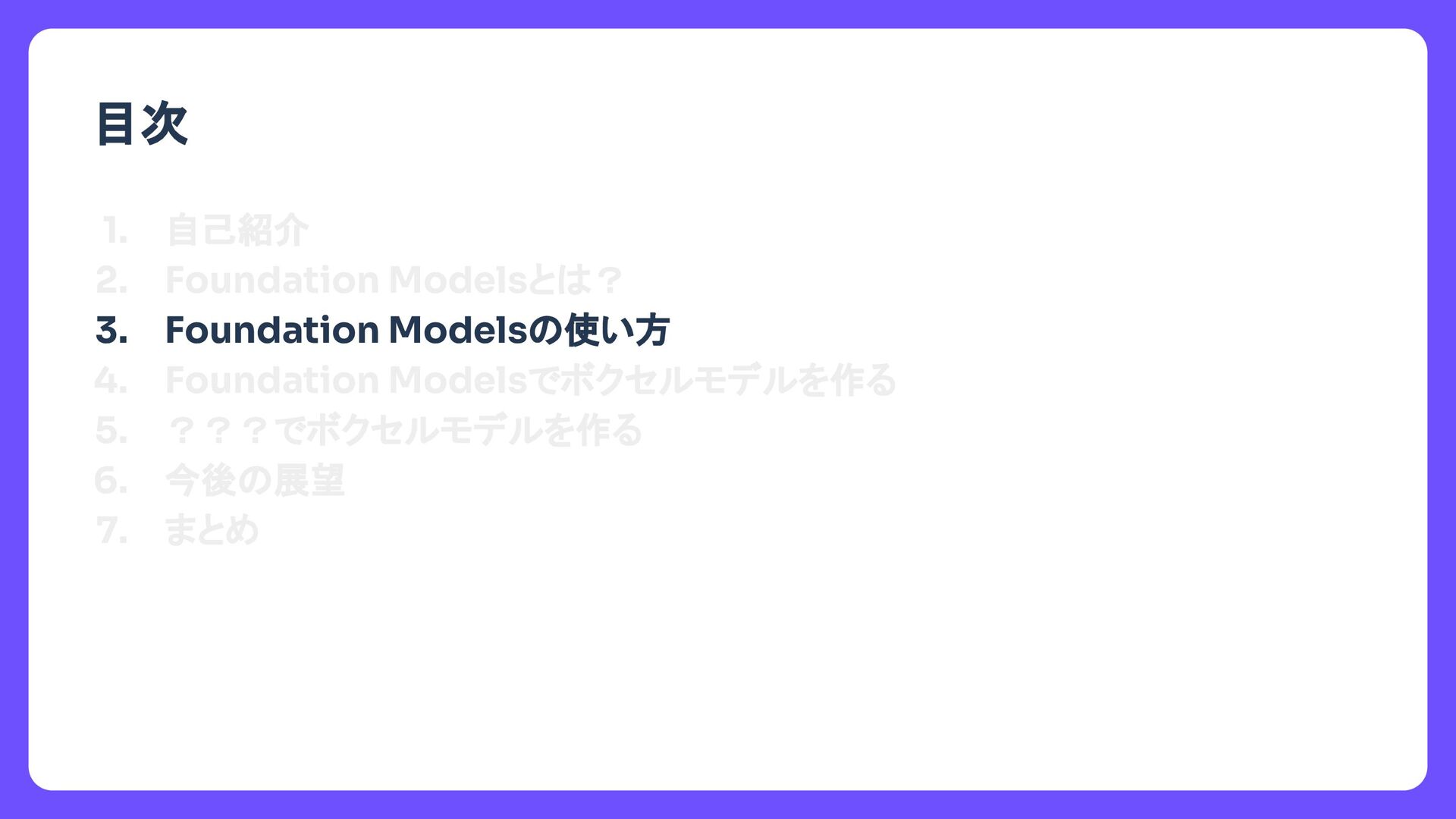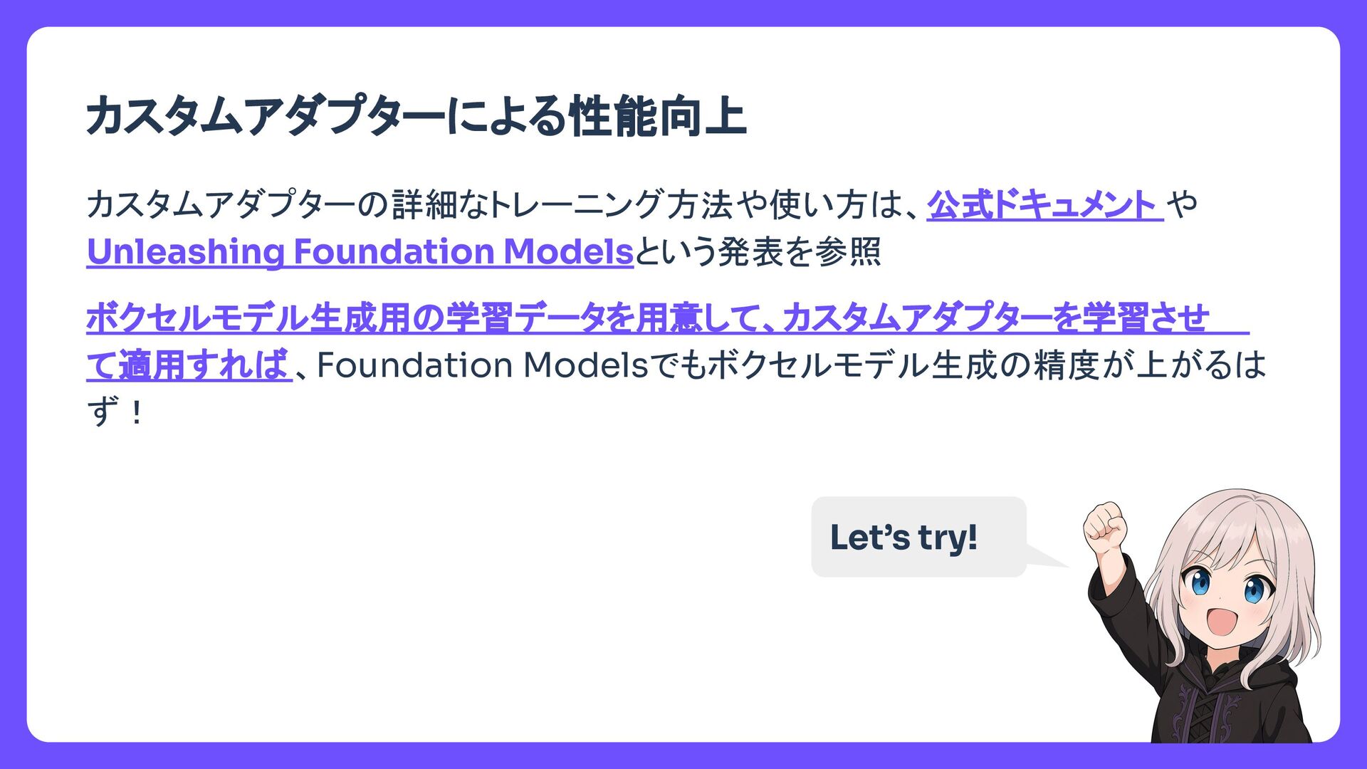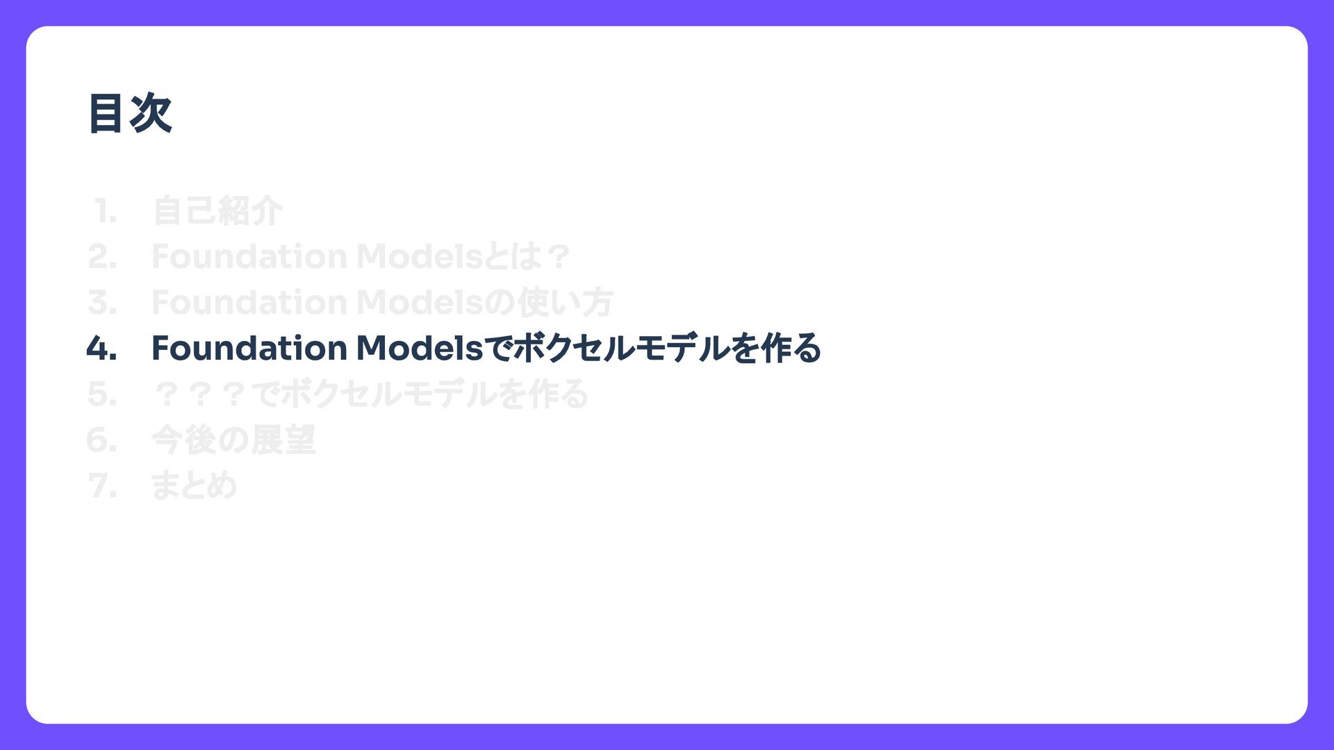 voxelSize: Float, modelSize: Float) -> String { """ あなた プロ 3Dモデラーです。 複数 ボクセル(サイズ: \(voxelSize)x\(voxelSize)x\(voxelSize))を3D空間内に配置して、\(modelName) ボクセルモデル(サイズ: \(modelSize)x\(modelSize)x\(modelSize))を作ってください 表面 ボクセル みを、以下 フォーマット JSON文字列で出力してください {"voxels":[{"position":{"x":1.0,"y":2.0,"z":3.0}, "color":{"red":255,"green":0,"blue":0}}, ...]} """ } private func generateVoxelModel(prompt: String) async -> VoxelModel? { // デフォルト 60秒でタイムアウトになりやすかった で 10分に設定 let configuration = OpenAI.Configuration(token: yourOpenAIAPIKey, timeoutInterval: 600) let openAI = OpenAI(configuration: configuration) guard let message = ChatQuery.ChatCompletionMessageParam(role: .user, content: prompt) else { return nil } let query = ChatQuery(messages: [message], model: .gpt5) guard let result = try? await openAI.chats(query: query), let jsonStr = result.choices.first?.message.content, let jsonData = jsonStr.data(using: .utf8) else { return nil } return try? JSONDecoder().decode(VoxelModel.self, from: jsonData) } }