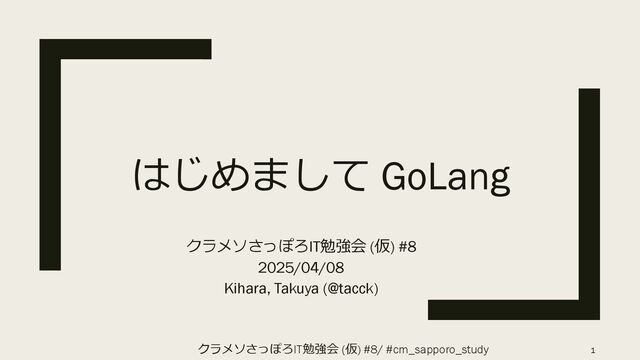 ▪ しっかり学ぶ – 実用Go言語 クラメソさっぽろIT勉強会 (仮) #8/ #cm_sapporo_study 8