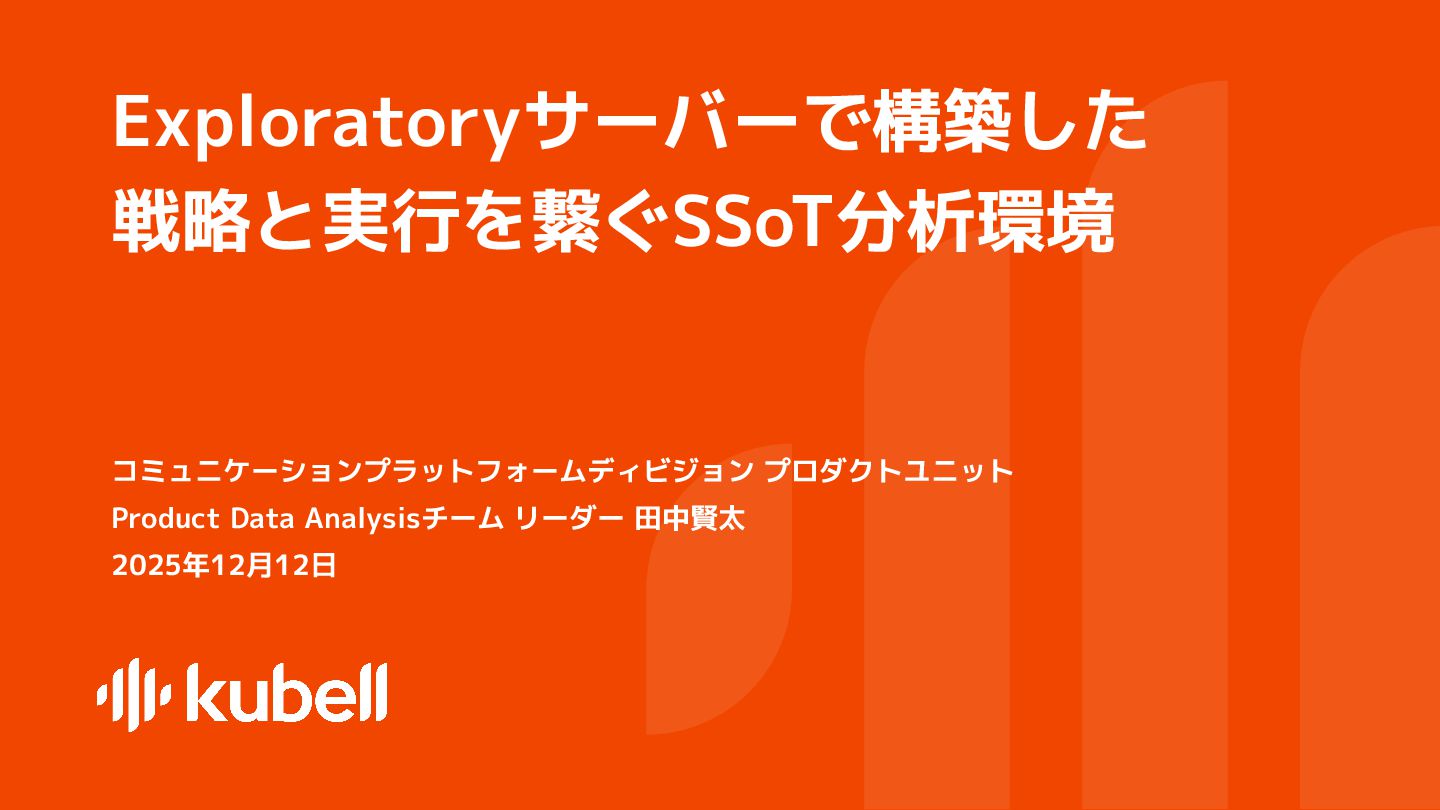Exploratoryサーバーで構築した 戦略と実行を繋ぐSSoT分析環境 コミュニケーションプラットフォームディビジョン プロダクトユニット Product Data Analysisチーム リーダー 田中賢太 2025年12月12日