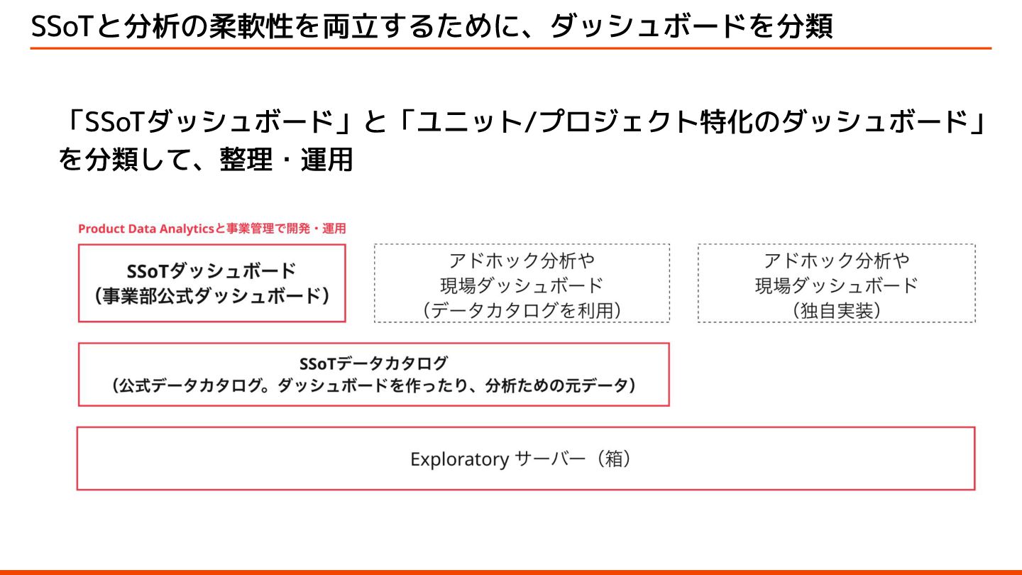 SSoTと分析の柔軟性を両立するために、ダッシュボードを分類 「SSoTダッシュボード」と「ユニット/プロジェクト特化のダッシュボード」 を分類して、整理・運用