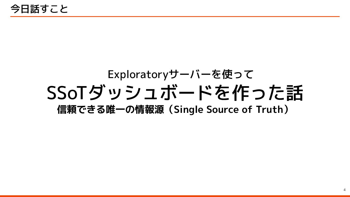 今日話すこと 4 SSoTダッシュボードを作った話 信頼できる唯一の情報源(Single Source of Truth) Exploratoryサーバーを使って