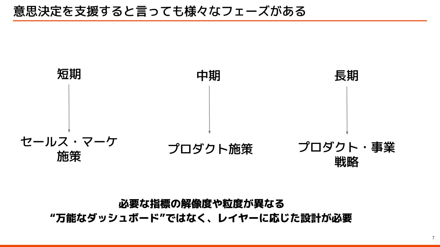 意思決定を支援すると言っても様々なフェーズがある 7 短期 中期 長期 セールス・マーケ 施策 プロダクト施策 プロダクト・事業 戦略