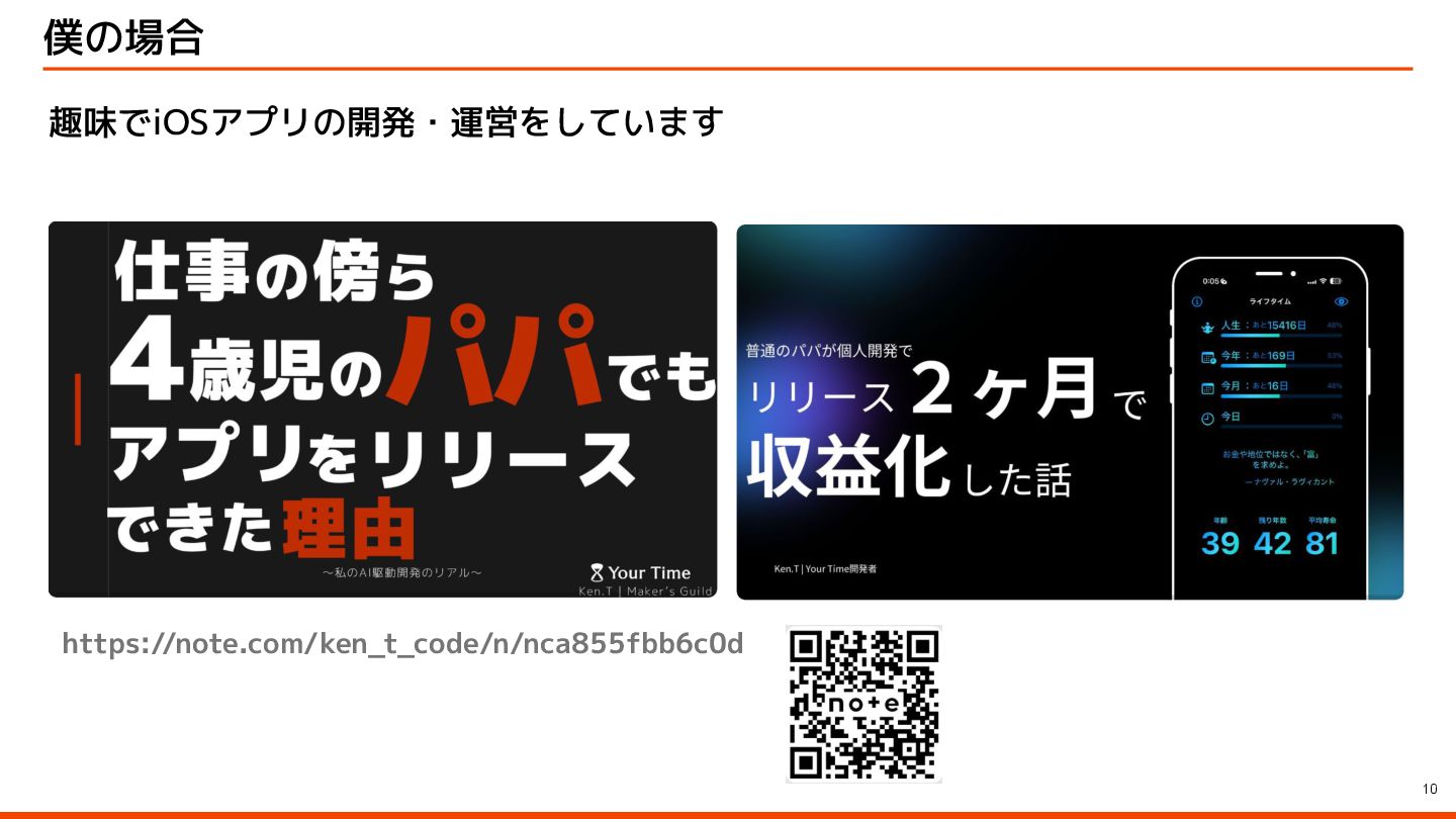 僕の場合 10 https://note.com/ken_t_code/n/nca855fbb6c0d 趣味でiOSアプリの開発・運営をしています