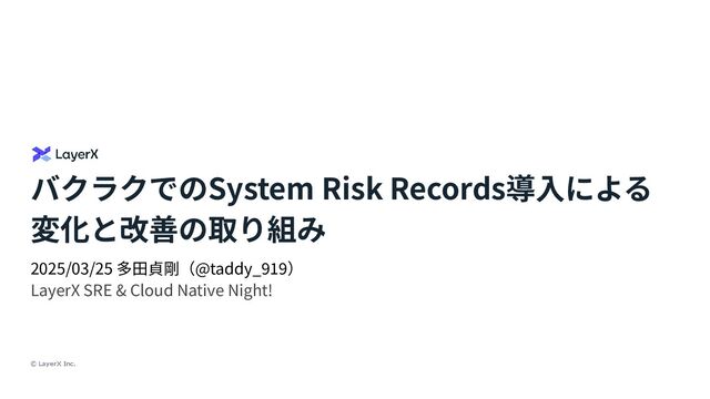 Records導⼊による 変化と改善の取り組み 2025/03/25 多⽥貞剛(@taddy_919) LayerX SRE & Cloud Native Night!