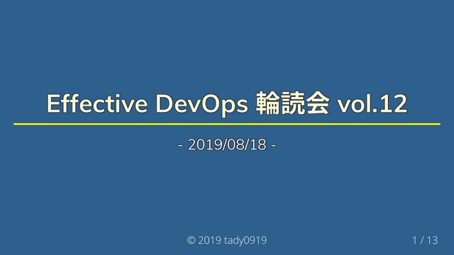 Target Target では組織のDevOps は個々のチームで作ったものを結合した では組織のDevOps は個々のチームで作ったものを結合した では組織のDevOps は個々のチームで作ったものを結合した では組織のDevOps は個々のチームで作ったものを結合した では組織のDevOps は個々のチームで作ったものを結合した では組織のDevOps は個々のチームで作ったものを結合した 変化は言葉で表現し, 個人からはじめることで変わる可能性がある 変化は言葉で表現し, 個人からはじめることで変わる可能性がある 変化は言葉で表現し, 個人からはじめることで変わる可能性がある 変化は言葉で表現し, 個人からはじめることで変わる可能性がある 変化は言葉で表現し, 個人からはじめることで変わる可能性がある 変化は言葉で表現し, 個人からはじめることで変わる可能性がある 組織的な学習を行うための変革で大切にしたのは実験, テスト, 失敗と 組織的な学習を行うための変革で大切にしたのは実験, テスト, 失敗と 組織的な学習を行うための変革で大切にしたのは実験, テスト, 失敗と 組織的な学習を行うための変革で大切にしたのは実験, テスト, 失敗と 組織的な学習を行うための変革で大切にしたのは実験, テスト, 失敗と 組織的な学習を行うための変革で大切にしたのは実験, テスト, 失敗と 成功 成功 成功 成功 成功 成功 変革のアクションで外部にもヒント求めたり,GitHub に経験を公開 変革のアクションで外部にもヒント求めたり,GitHub に経験を公開 変革のアクションで外部にもヒント求めたり,GitHub に経験を公開 変革のアクションで外部にもヒント求めたり,GitHub に経験を公開 変革のアクションで外部にもヒント求めたり,GitHub に経験を公開 変革のアクションで外部にもヒント求めたり,GitHub に経験を公開 した した した した した した ツールは特定のものを使うことにして, サイロ化を避けてAPI を管理 ツールは特定のものを使うことにして, サイロ化を避けてAPI を管理 ツールは特定のものを使うことにして, サイロ化を避けてAPI を管理 ツールは特定のものを使うことにして, サイロ化を避けてAPI を管理 ツールは特定のものを使うことにして, サイロ化を避けてAPI を管理 ツールは特定のものを使うことにして, サイロ化を避けてAPI を管理 可能 可能 可能 可能 可能 可能 知見の共有は内部DevOpsDays で行ったり, コーチを設けて一貫した 知見の共有は内部DevOpsDays で行ったり, コーチを設けて一貫した 知見の共有は内部DevOpsDays で行ったり, コーチを設けて一貫した 知見の共有は内部DevOpsDays で行ったり, コーチを設けて一貫した 知見の共有は内部DevOpsDays で行ったり, コーチを設けて一貫した 知見の共有は内部DevOpsDays で行ったり, コーチを設けて一貫した メッセージを送れるようにした メッセージを送れるようにした メッセージを送れるようにした メッセージを送れるようにした メッセージを送れるようにした メッセージを送れるようにした © 2019 tady0919 10 / 13