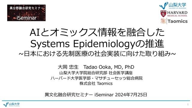 Prof. Carlos Camargo ハーバード大学 Prof. Camargo/Hasegawa Lab (オミックス解析×一次予防戦略のトップ研究室) 1200種類のプロテインに機械学習・因果推論を適用。 アレルギー疾患の重症化を予測・予防するために、 IL-17とVSIGというプロテインを確認する必要があること、 またこれらのプロテインを制御するpathwayを明らかにした。 → 全てのオミックスでこれらのアプローチを実現したい Prof. Kohei Hasegawa
