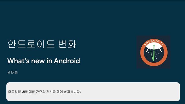 • 개발 SDK에서는 디저트 이름 확인 가능(Tiramisu부터 다시) • 최근 안드로이드는 보안 업데이트 위주 ◦ 권한의 강화 및 보완 ▪ 일정 기간 사용하지 않는 권한 회수 ▪ 파일에 대한 접근성 개선(사용자 입장에선 좋은) ◦ 백그라운드 강화 ▪ 백그라운드 시간 등으로 제한(안드로이드 14에서 더욱 강화) 정리 9 이후 버전부터 디저트 이름 대신 Q, R, S를 사용하다가 13부터 개발 중인 SDK에서라도 디저트 이름을 보여주고 있다. 최근엔 보안 이슈 위주 업데이트가 많은데, 이는 Play store의 정책과도 연결점이 있으니 잘 확인해야 한다. 안드로이드 14부터는 백그라운드 서비스 사용 시 서비스 타입을 적용해야 하며, 그 외에는 시간제한이 포함되었다.