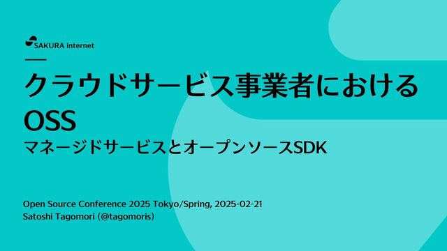 マネージドサービスとオープンソースSDK クラウドサービス事業者における OSS Open Source Conference 2025 Tokyo/Spring, 2025-02-21 Satoshi