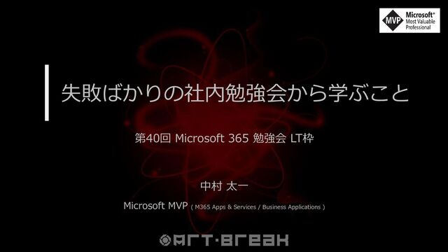 失敗ばかりの社内勉強会から学ぶこと 中村 太一 Microsoft MVP ( M365 Apps & Services