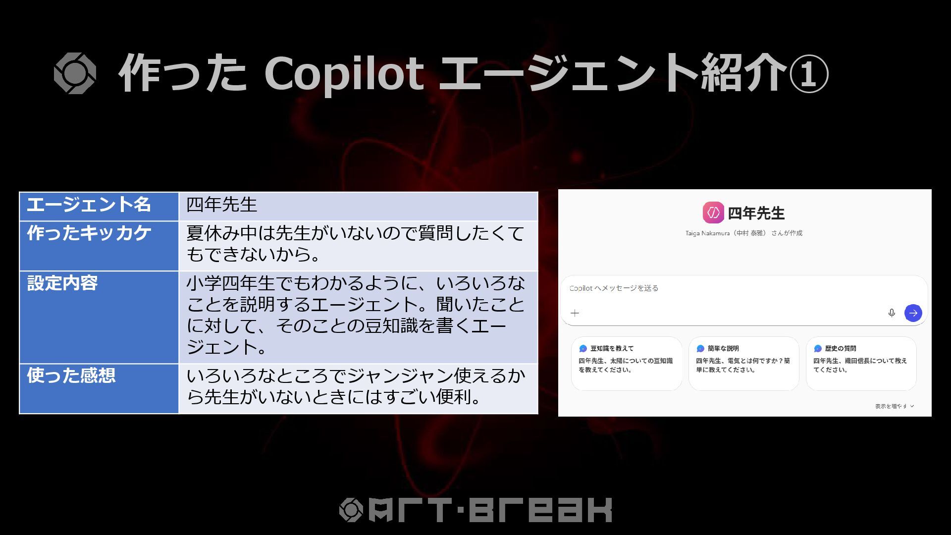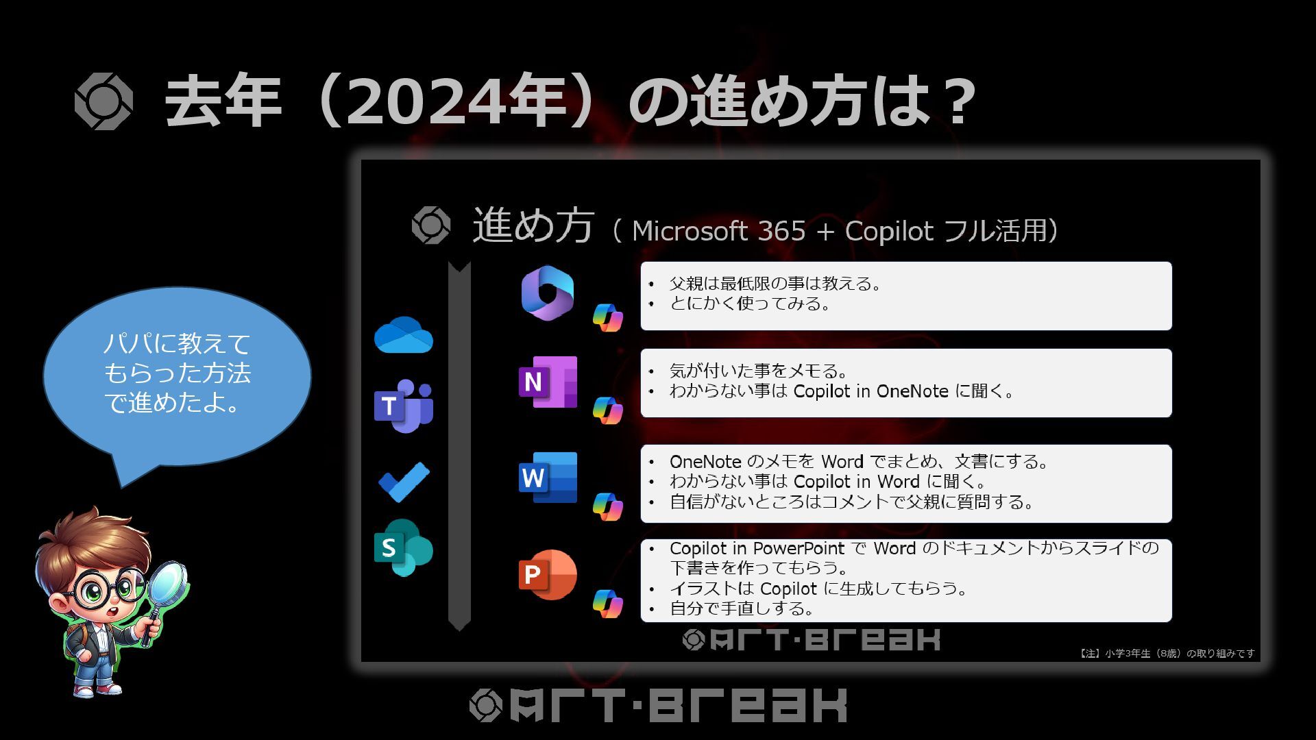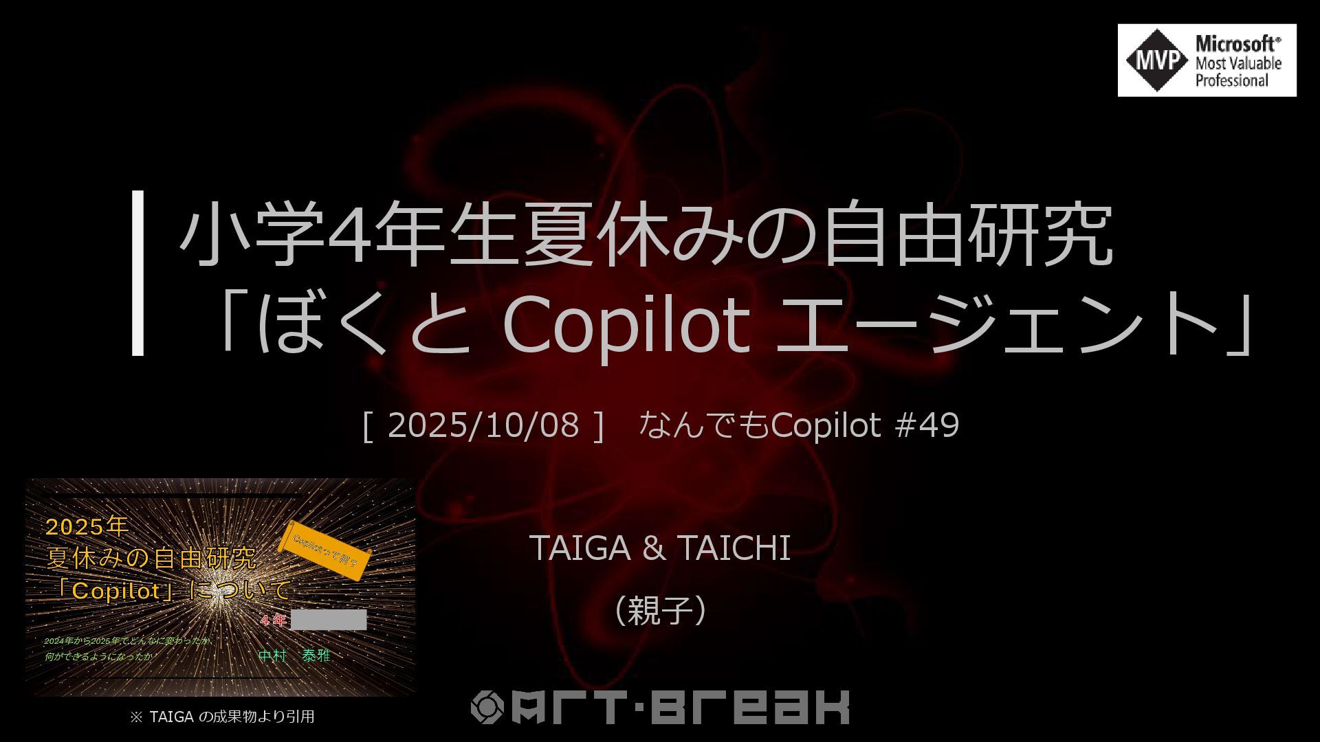 2025/10/08 開催の「なんでもCopilot #49」に親子登壇した際に利用したスライドです。