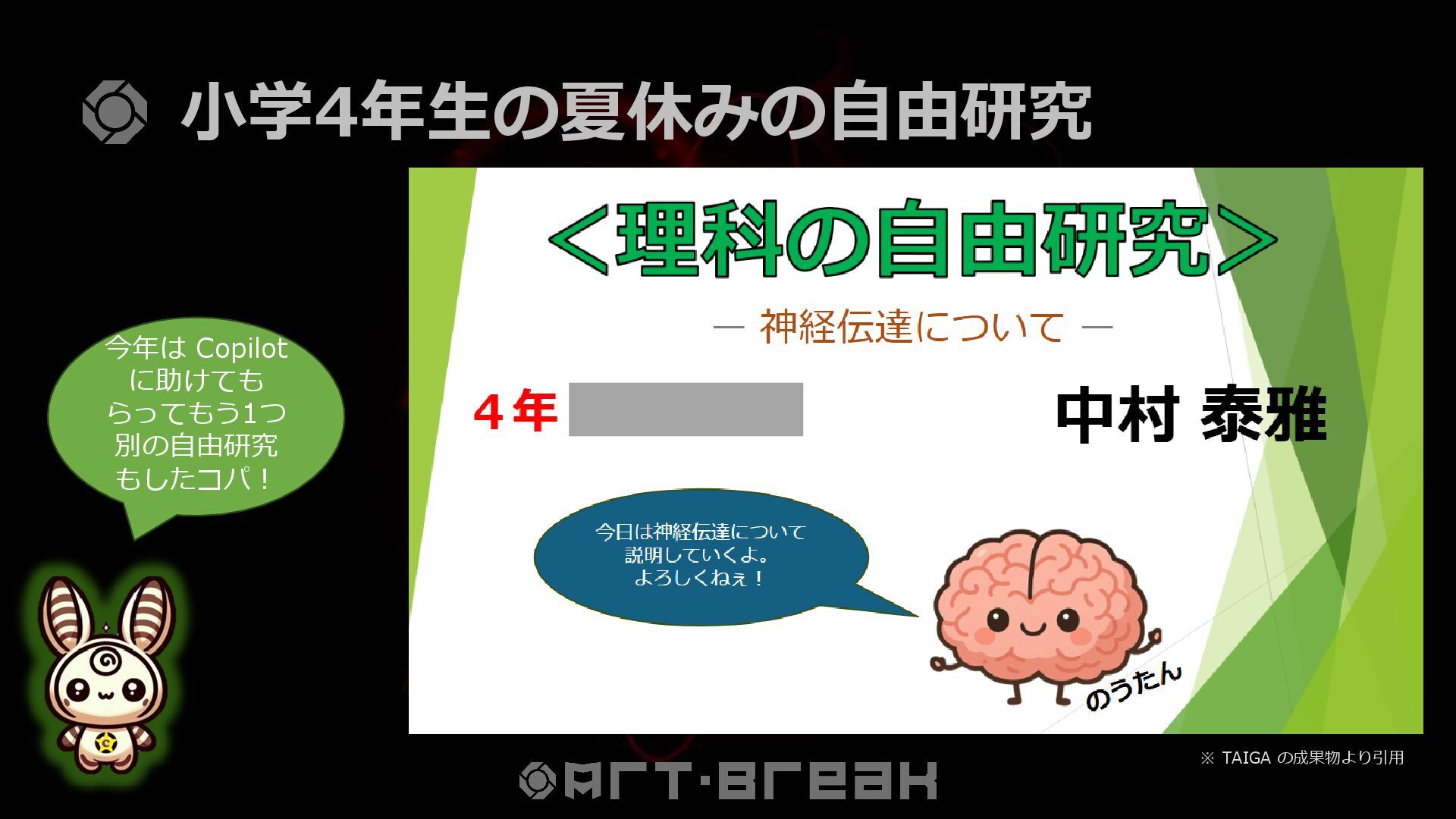 小学4年生の夏休みの自由研究 今年は Copilot に助けても らってもう1つ 別の自由研究 もしたコパ! ※ TAIGA の成果物より引用