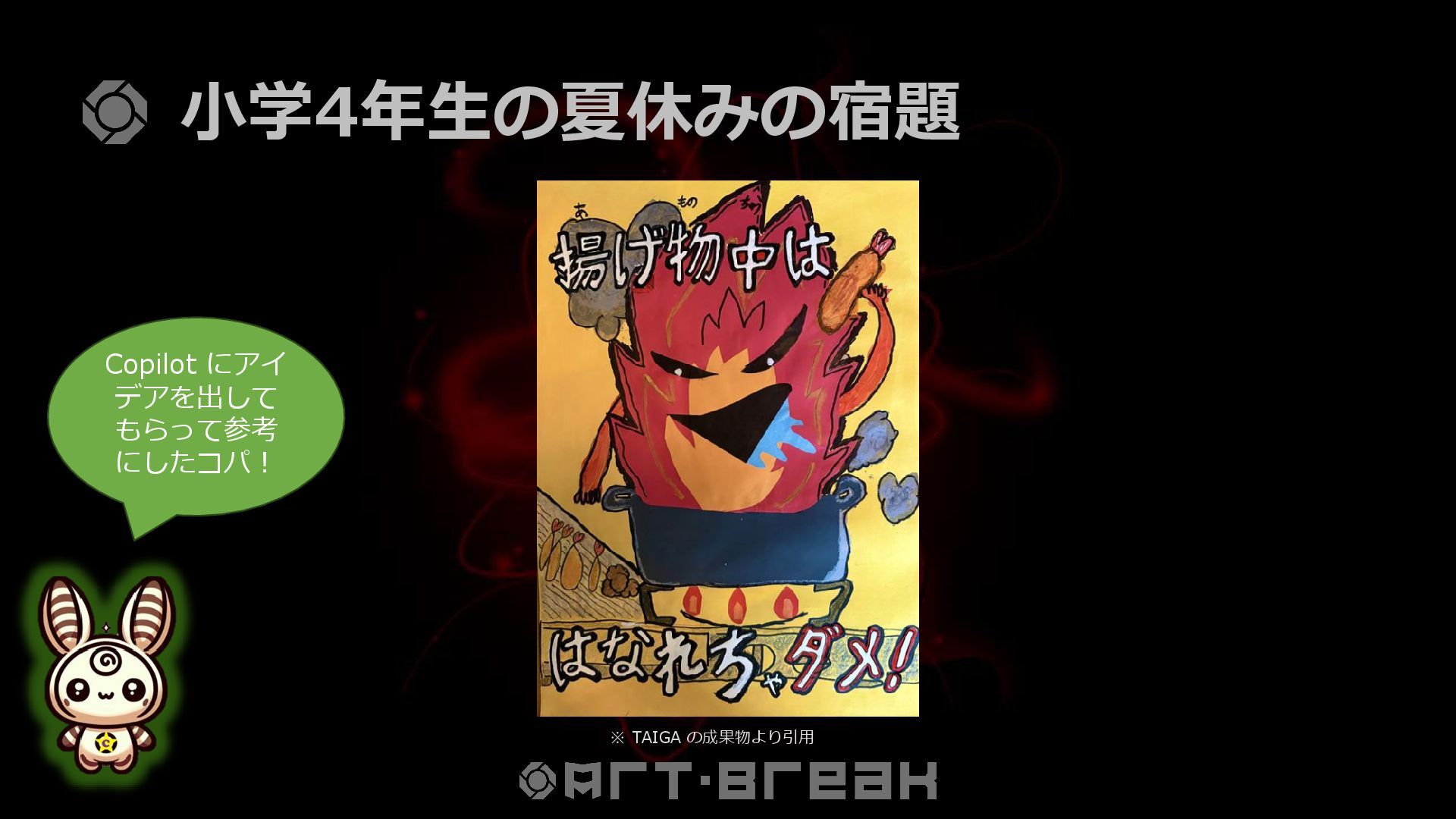 小学4年生の夏休みの宿題 Copilot にアイ デアを出して もらって参考 にしたコパ! ※ TAIGA の成果物より引用