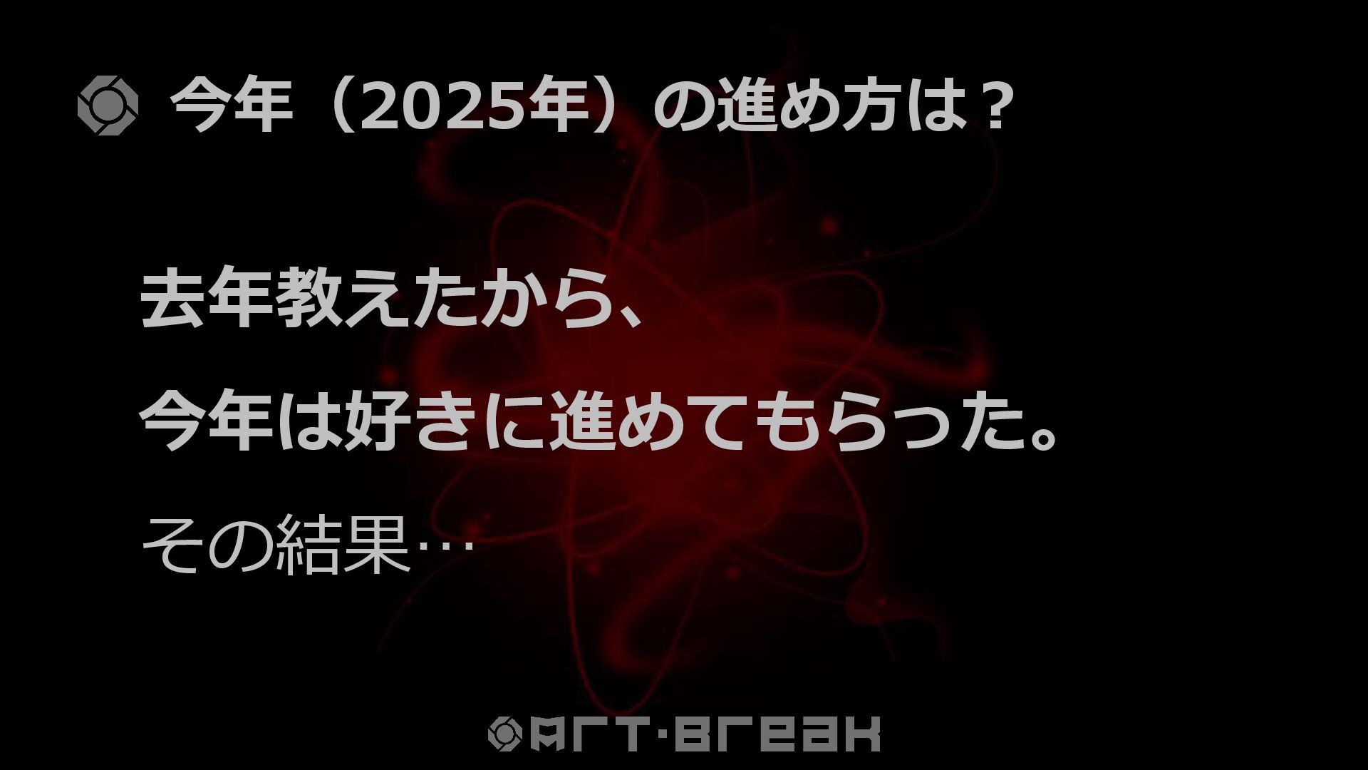 今年(2025年)の進め方は? 去年教えたから、 今年は好きに進めてもらった。 その結果…