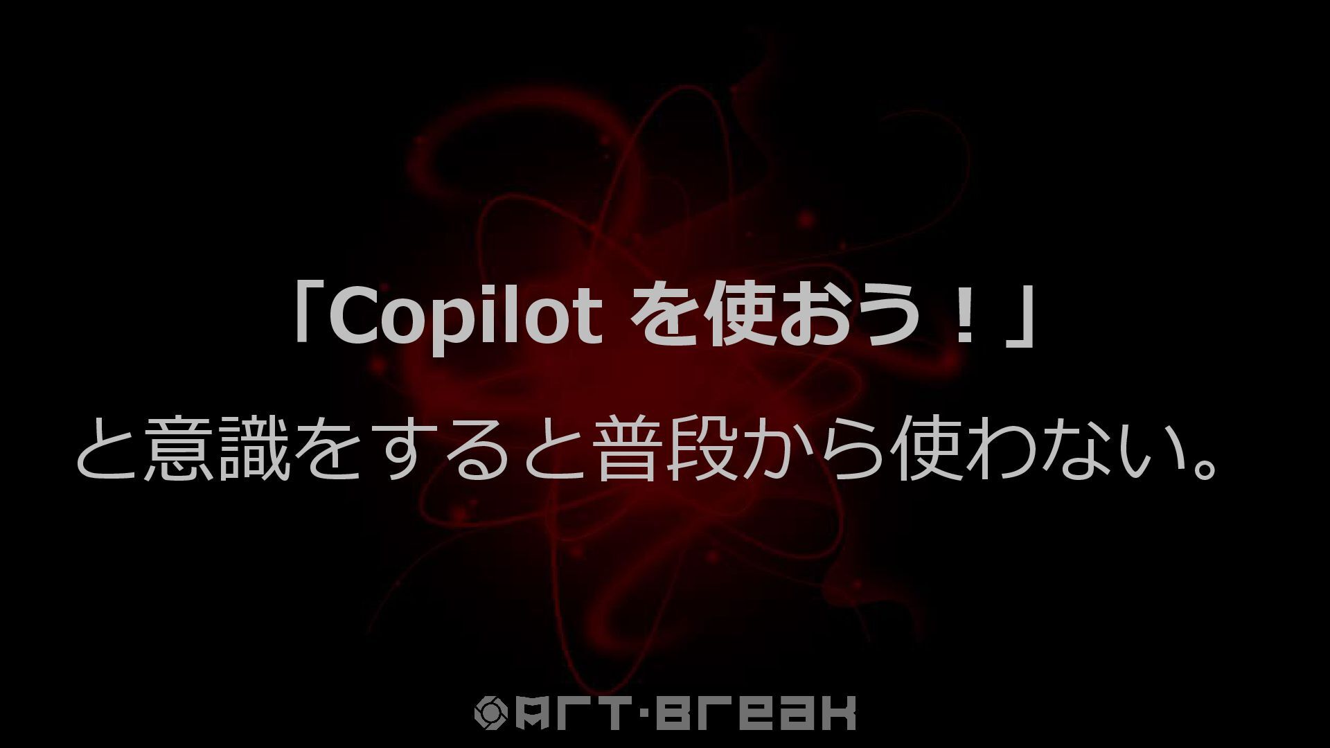 「Copilot を使おう!」 と意識をすると普段から使わない。