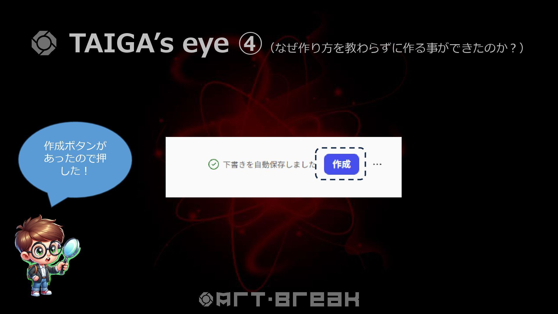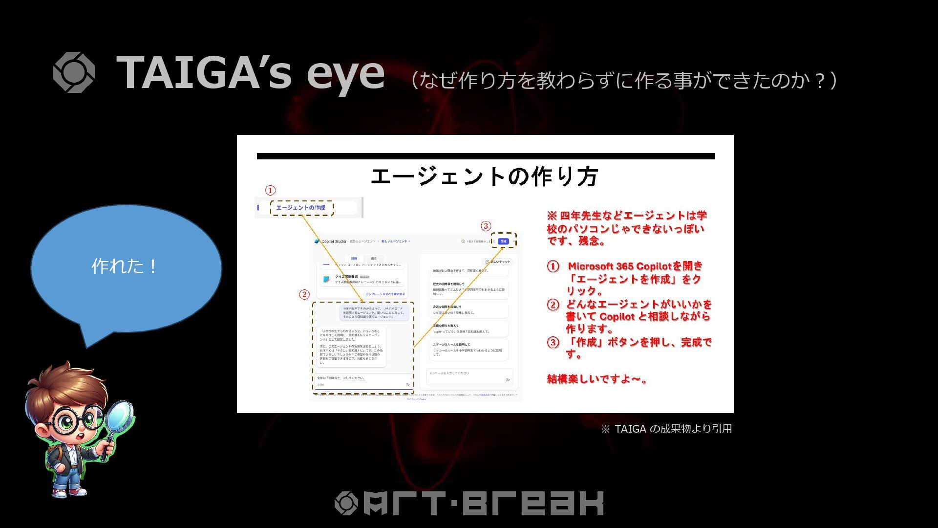 TAIGA’s eye (なぜ作り方を教わらずに作る事ができたのか?) 作れた! ※ TAIGA の成果物より引用