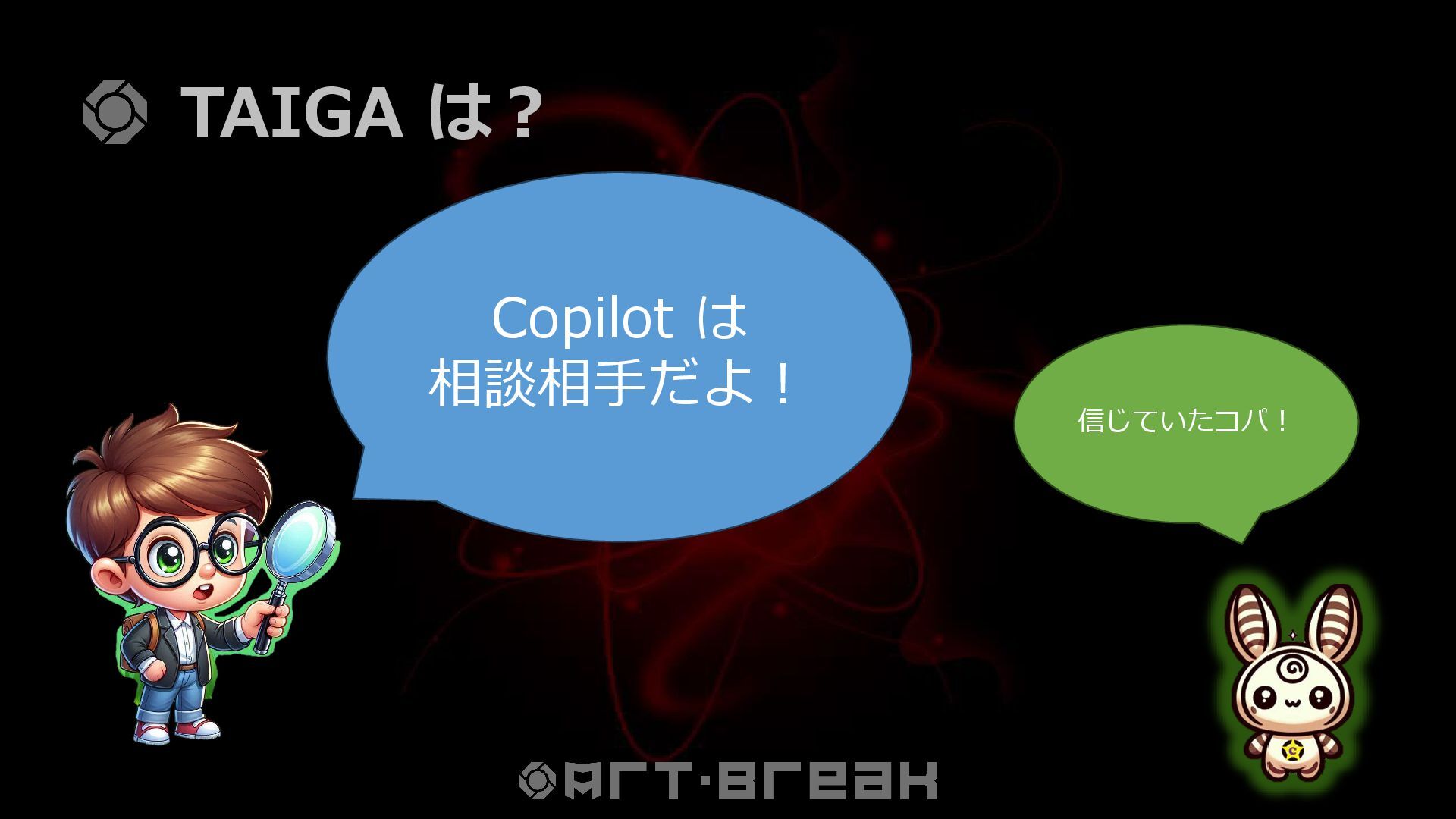 TAIGA は? 信じていたコパ! Copilot は 相談相手だよ!