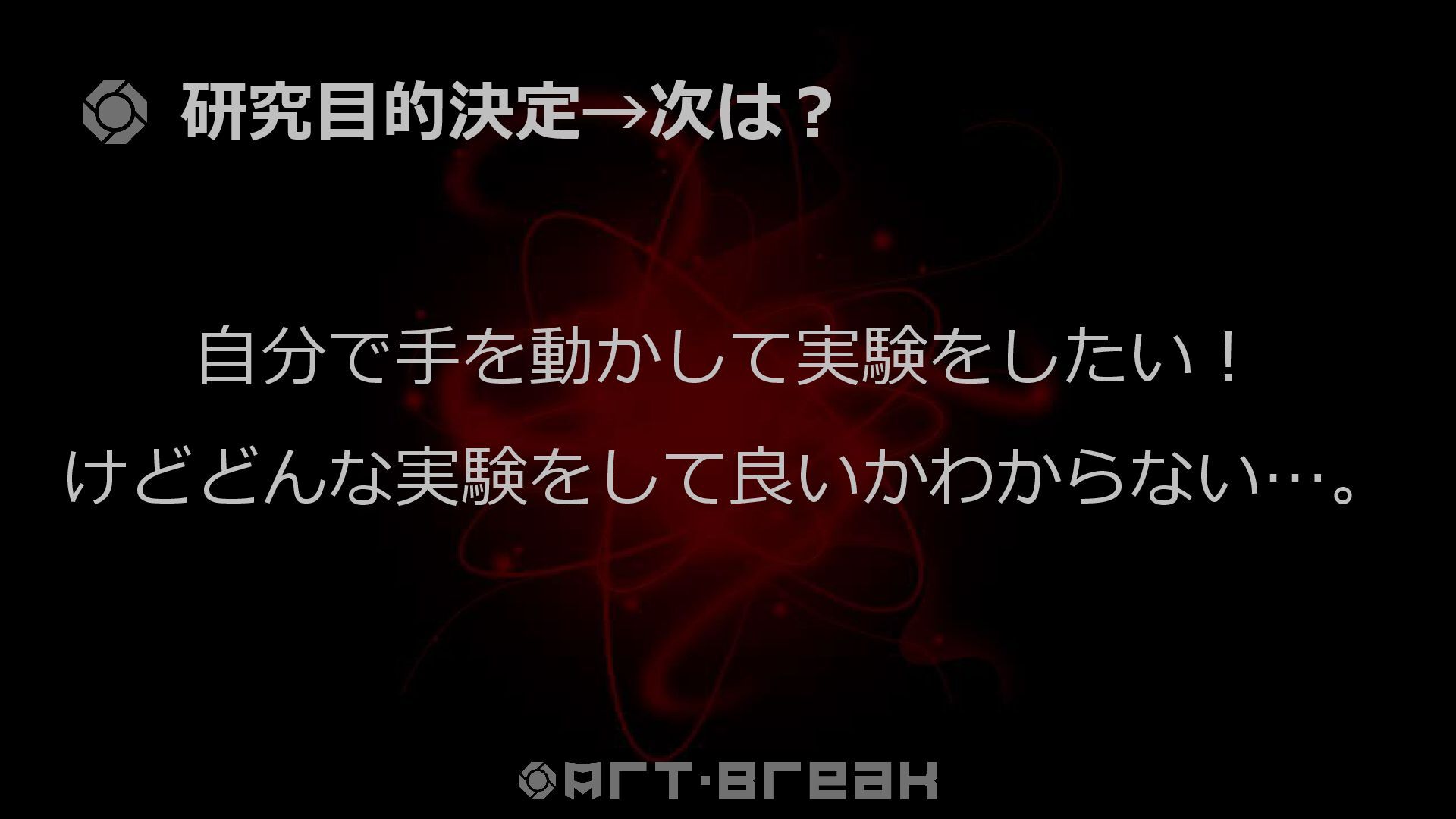 自分で手を動かして実験をしたい! けどどんな実験をして良いかわからない…。 研究目的決定→次は?