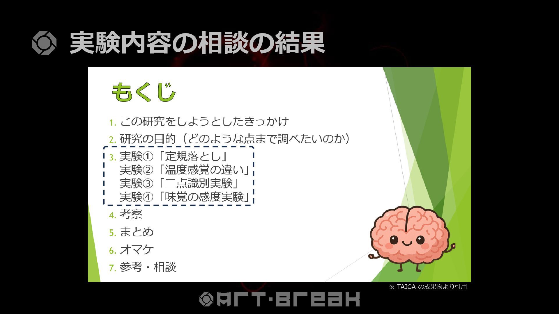 実験内容の相談の結果 ※ TAIGA の成果物より引用