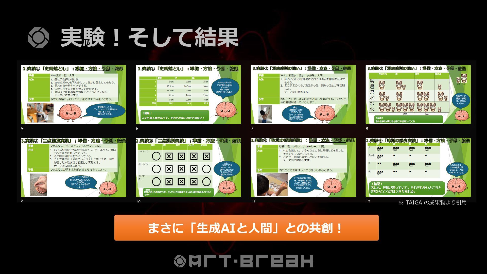 実験!そして結果 まさに「生成AIと人間」との共創! ※ TAIGA の成果物より引用
