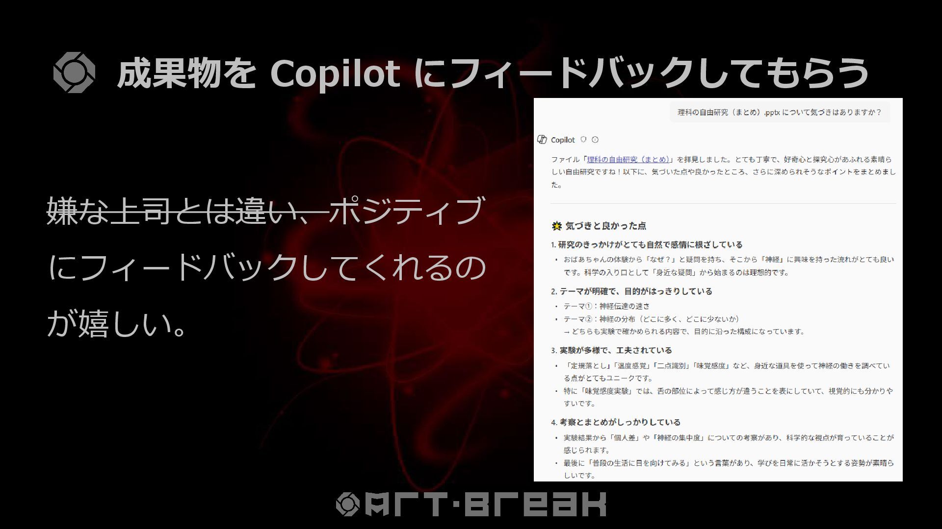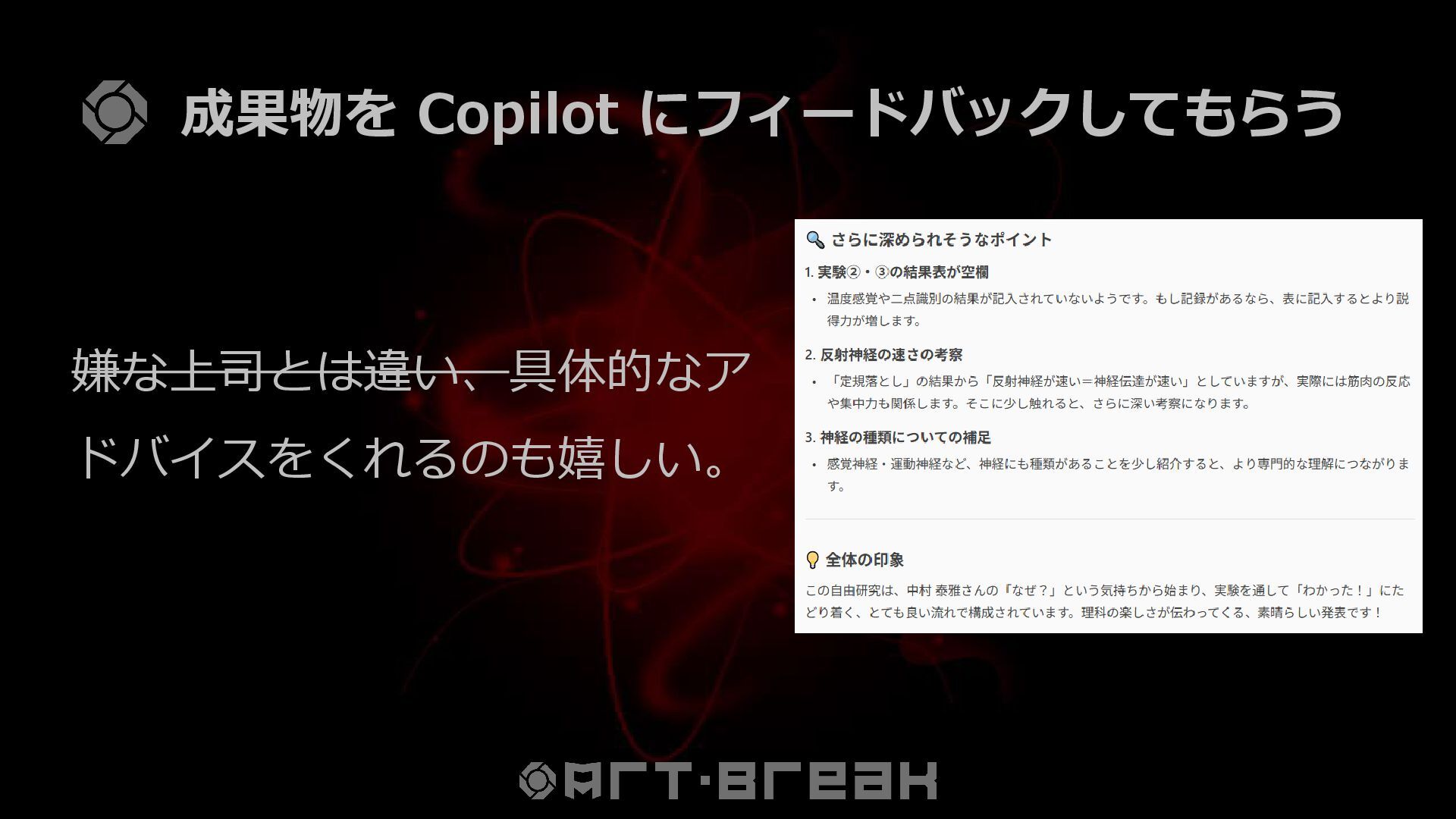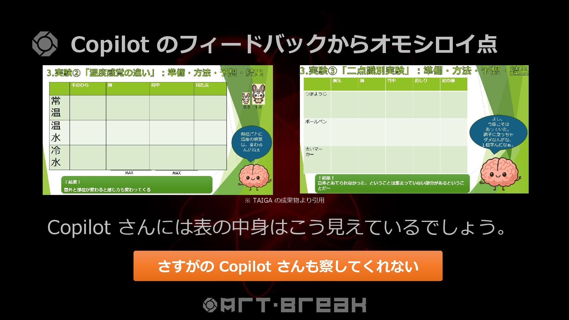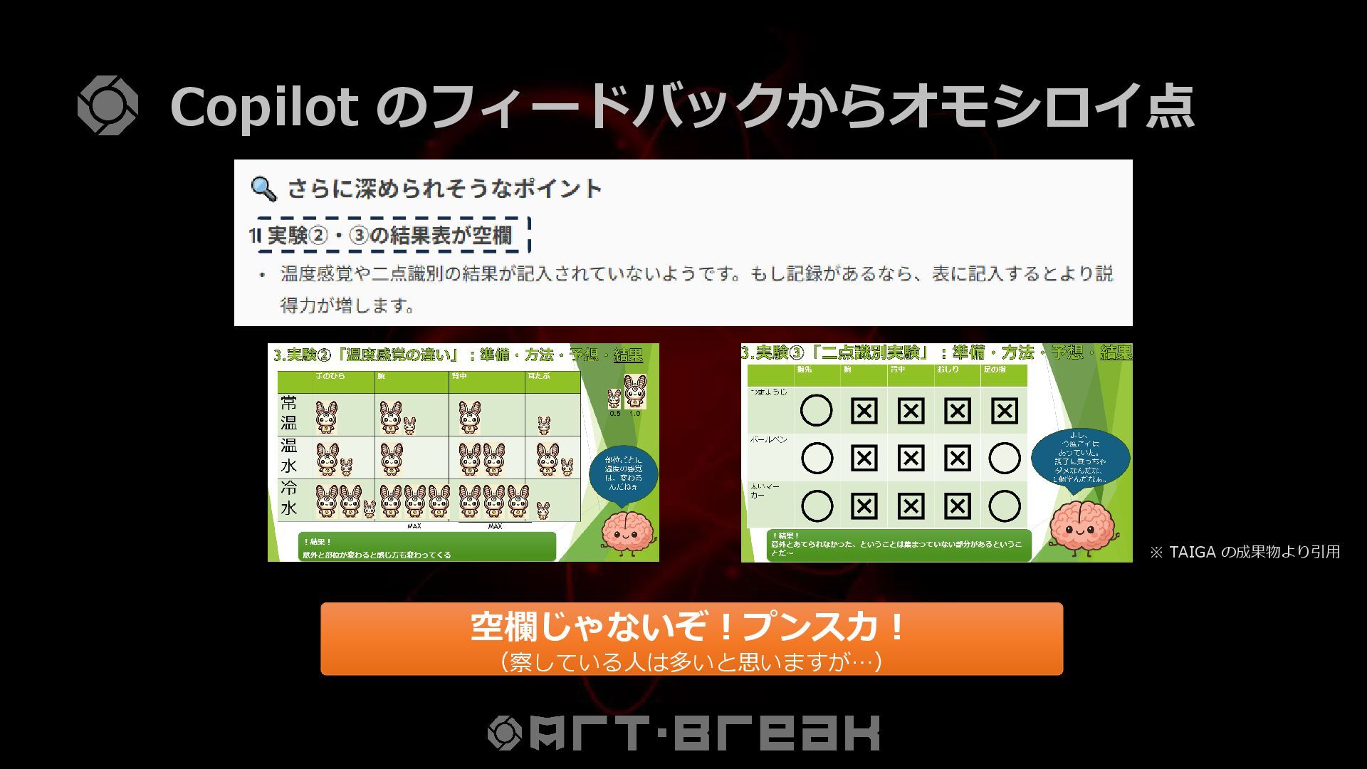 Copilot のフィードバックからオモシロイ点 空欄じゃないぞ!プンスカ! (察している人は多いと思いますが…) ※ TAIGA の成果物より引用