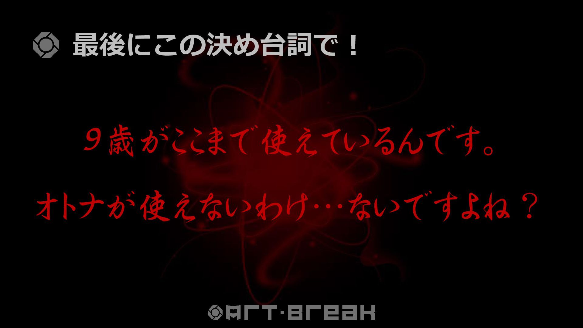 9歳がここまで使えているんです。 オトナが使えないわけ…ないですよね? 最後にこの決め台詞で!