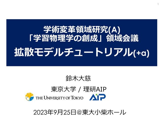 Taiji Suzuki: Diffusion Models are Minimax Optimal Distribution Estimators. ICML2023 (oral), arXiv:2303.01861] Kazusato Oko (The University of Tokyo) Shunta Akiyama (The University of Tokyo)