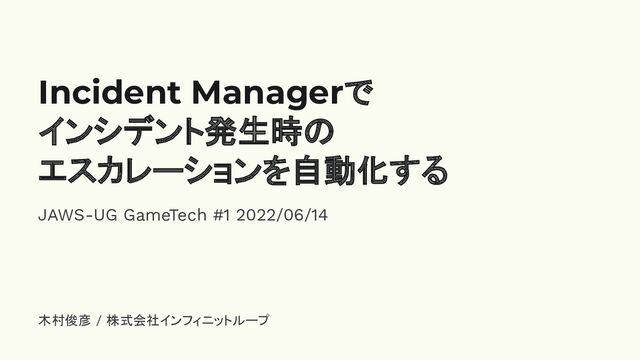 JAWS-UG GameTech #1 2022/06/14 木村俊彦 / 株式会社インフィニットループ Incident Managerで インシデント発生時の