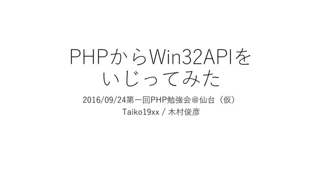 PHPからWin32APIを いじってみた 2016/09/24第一回PHP勉強会@仙台(仮) Taiko19xx / 木村俊彦