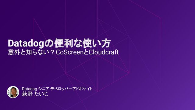 Datadogの便利な使い方 意外と知らない?CoScreenとCloudcraft Datadog シニア デベロッパーアドボケイト 萩野 たいじ