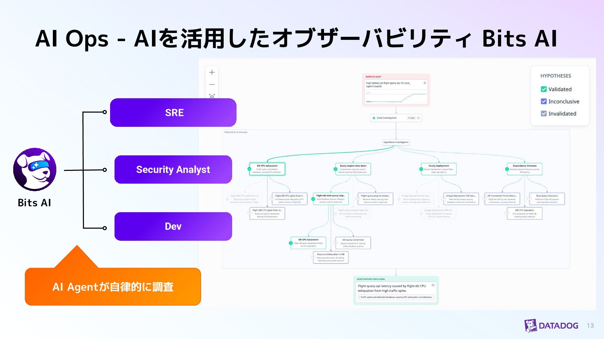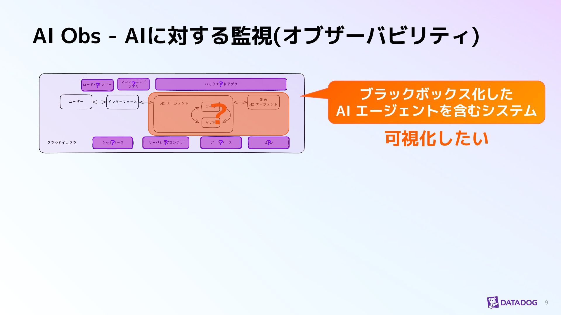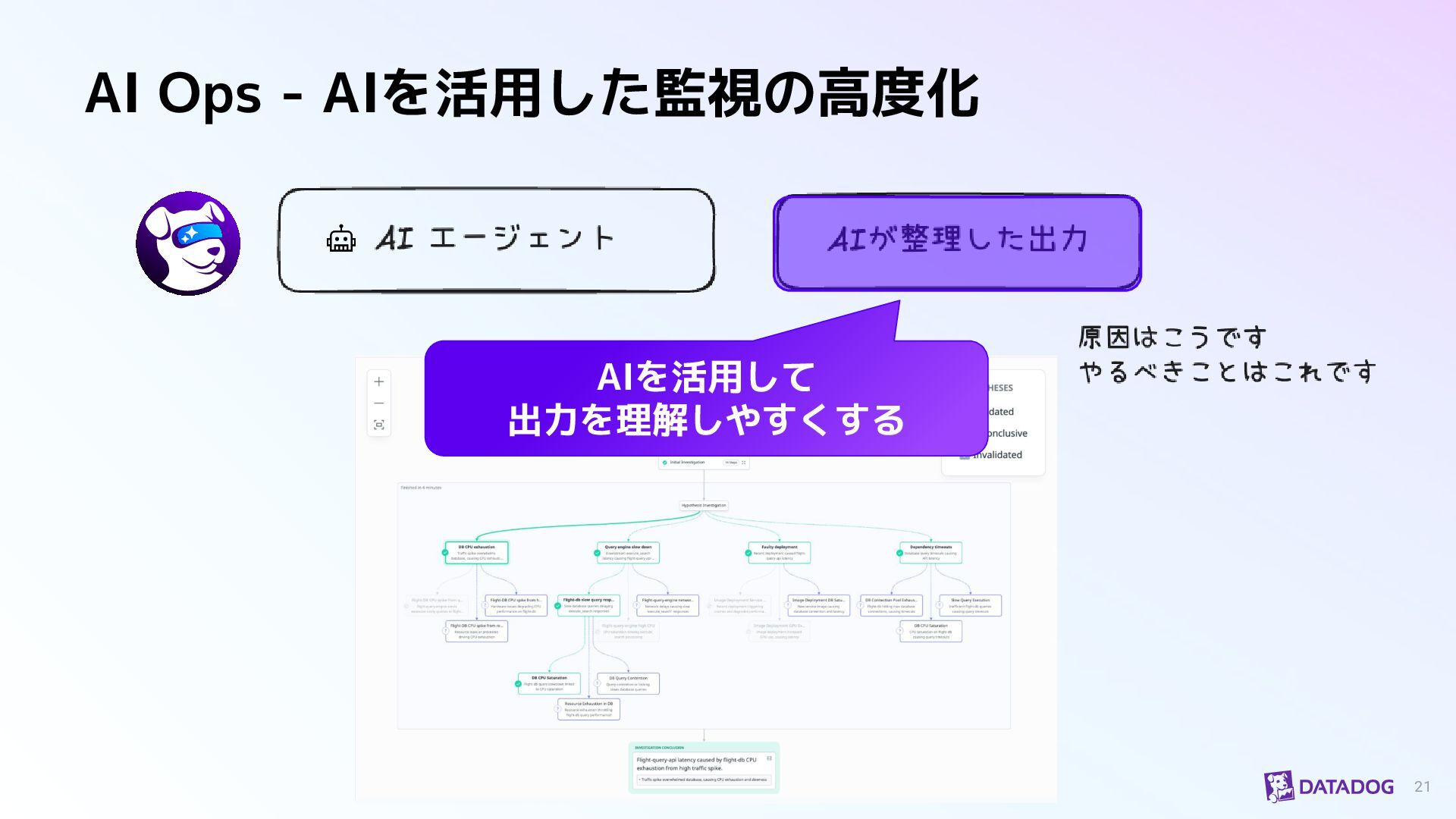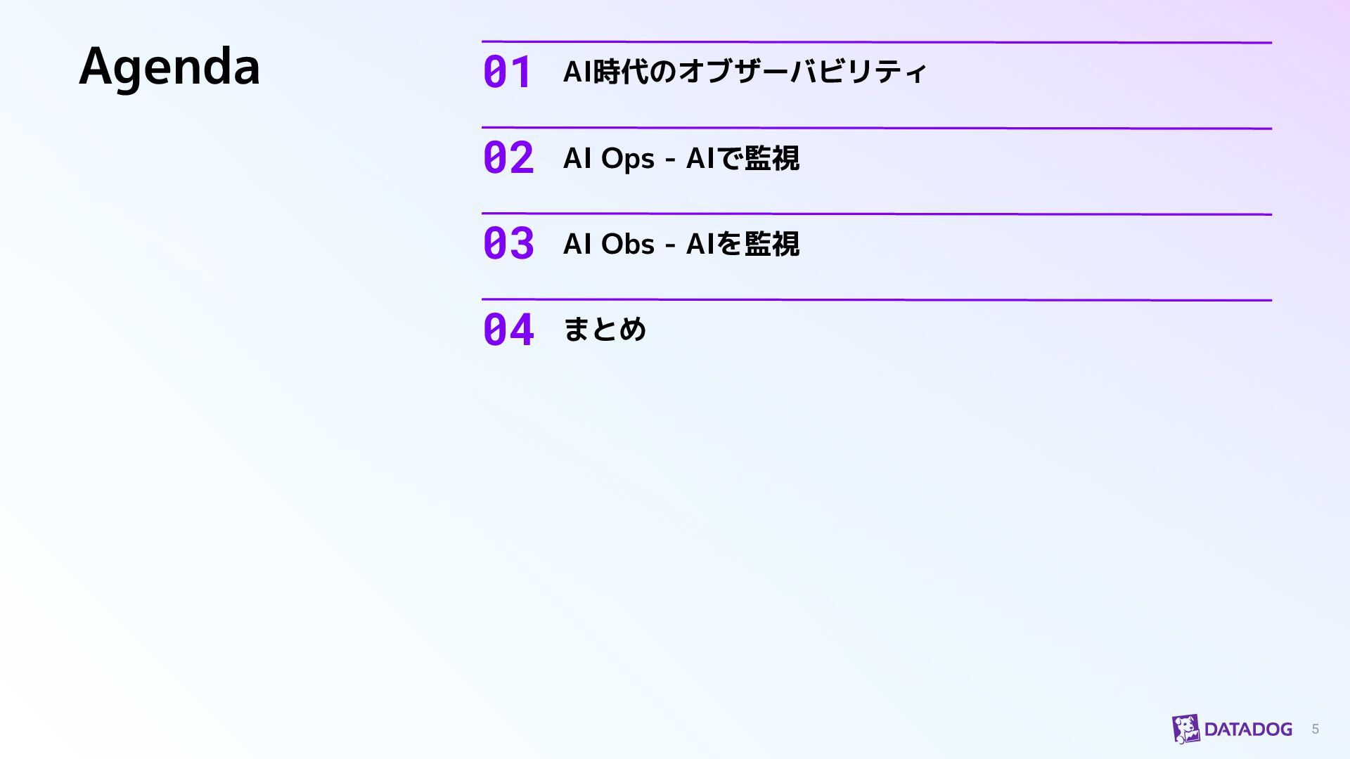 Datadogは「AIで監視する」AI Opsと、「AIを監視する」AI Obsという二つの側面から、AI時代のオブザーバビリティを支援します。