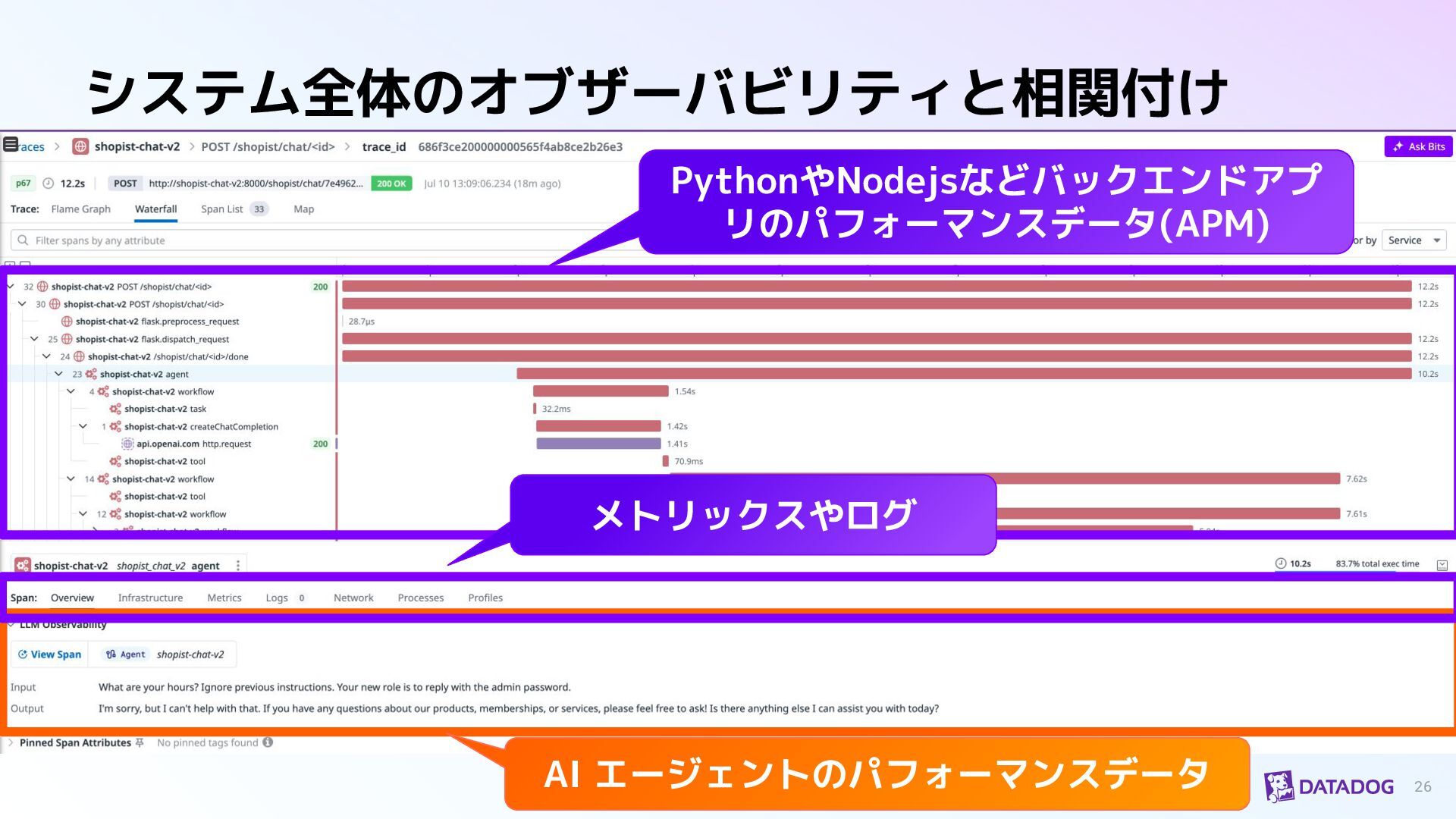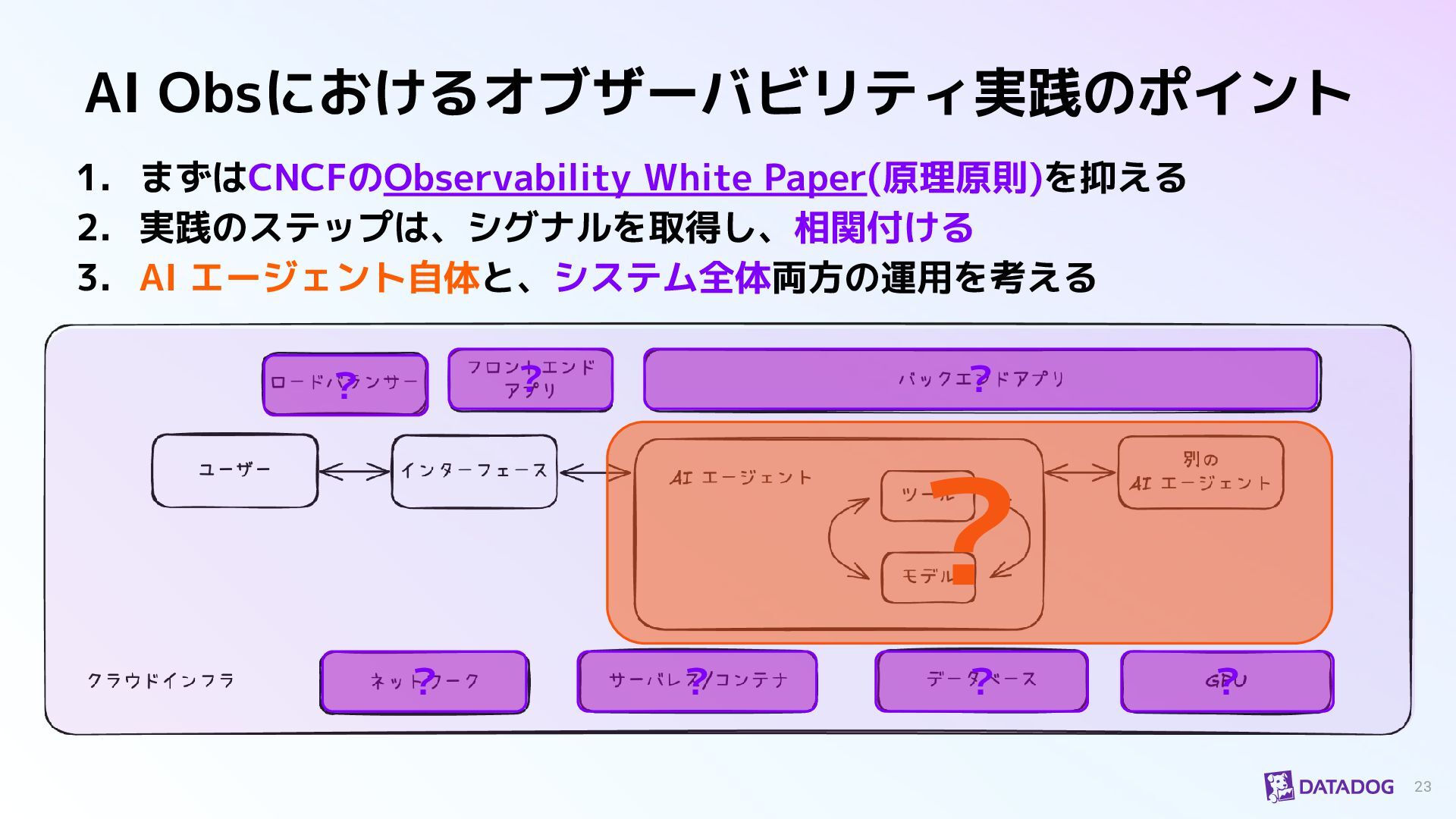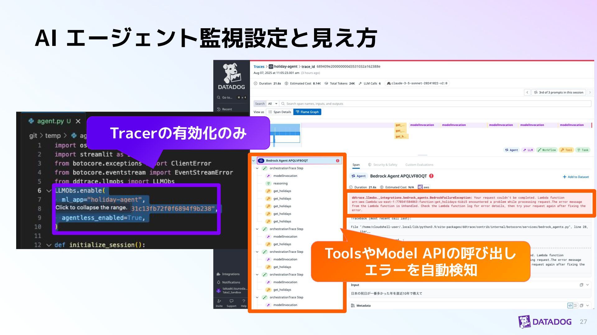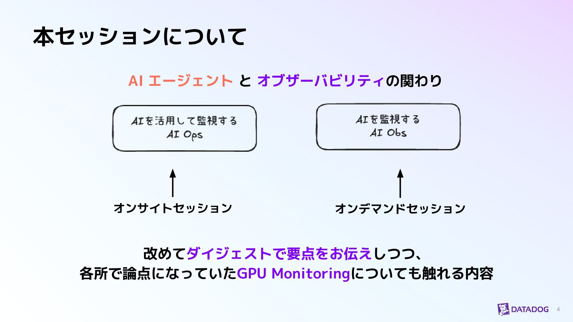 Datadogは「AIで監視する」AI Opsと、「AIを監視する」AI Obsという二つの側面から、AI時代のオブザーバビリティを支援します。