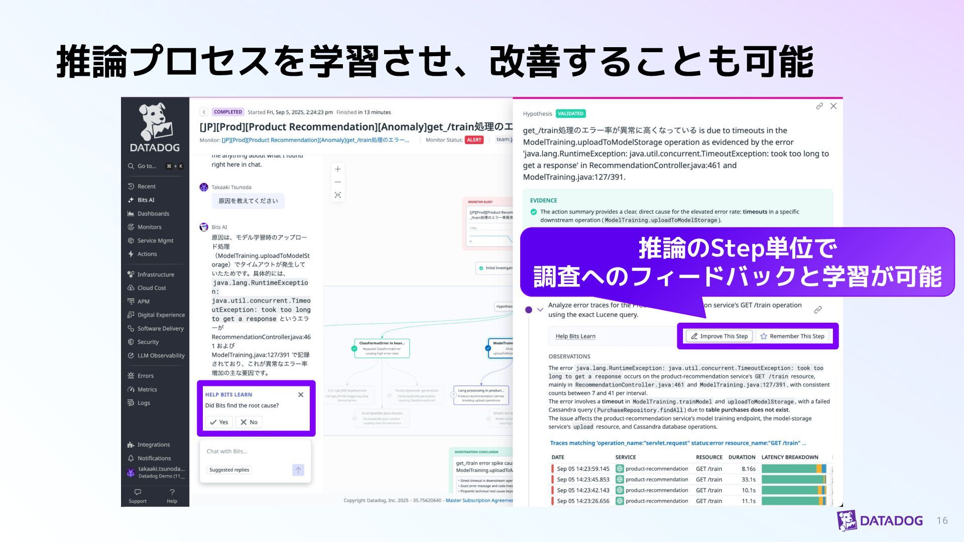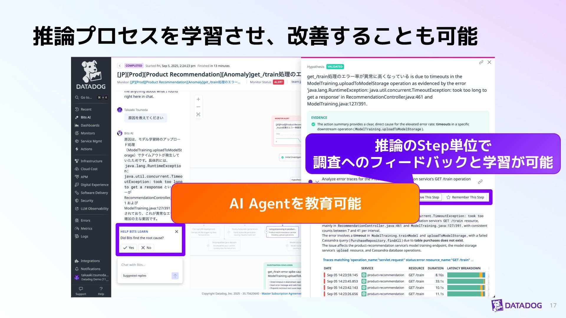 本講演では、AI Agentや独自の機械学習モデルによる異常検知や自動化を通じた運用高度化の仕組み、そして生成AIやAI Agentを組み込んだシステムの健全性を可視化・監視するための最新機能をご紹介します。