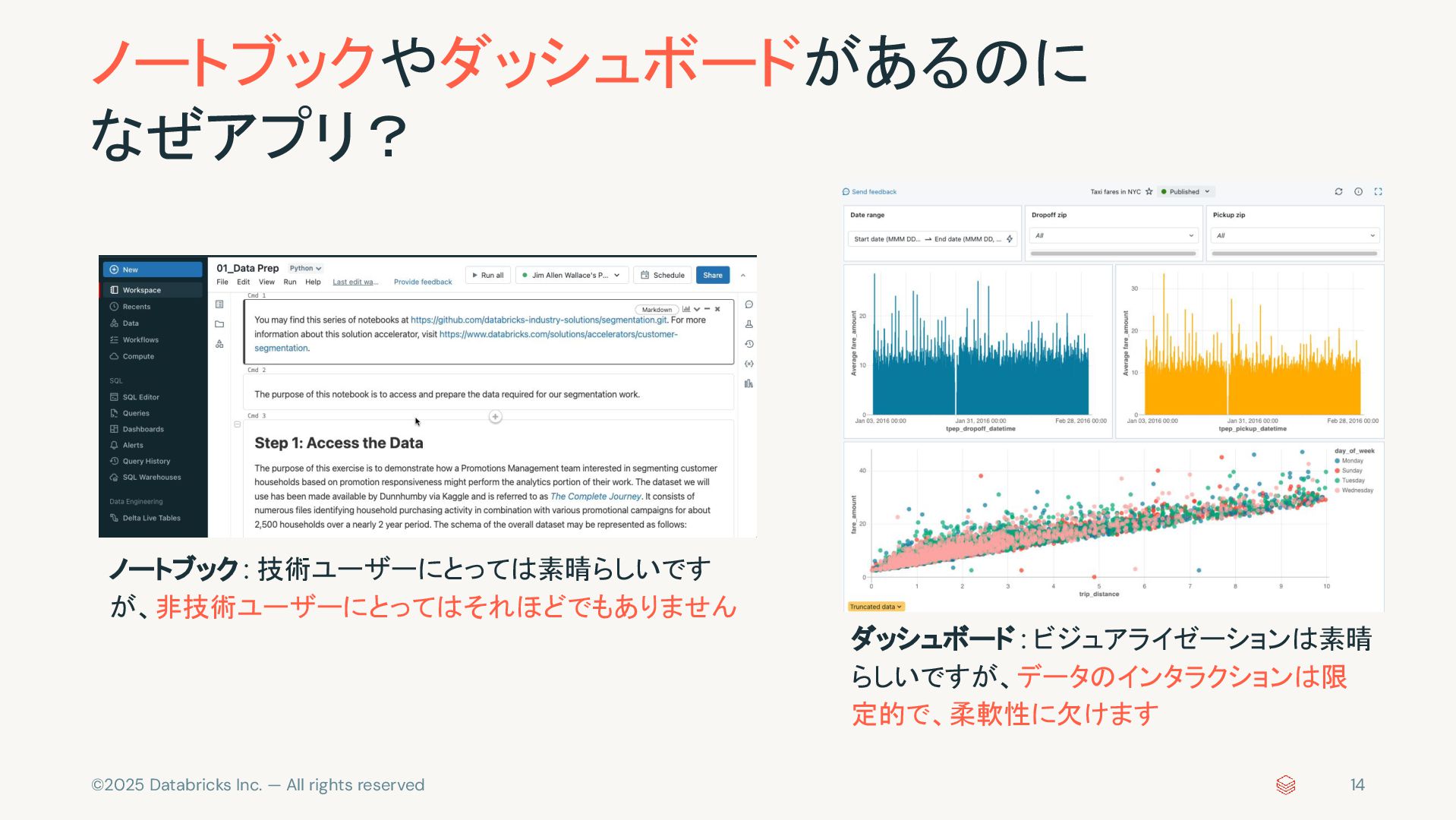 ©2025 Databricks Inc. — All rights reserved アプリとは? 13 (主に)非技術ユーザー向けに