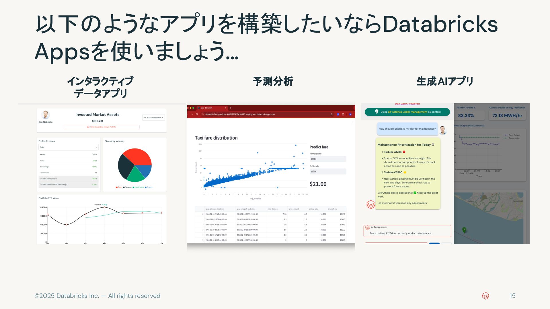 ©2025 Databricks Inc. — All rights reserved 以下のようなアプリを構築したいならDatabricks Appsを使いましょう… …