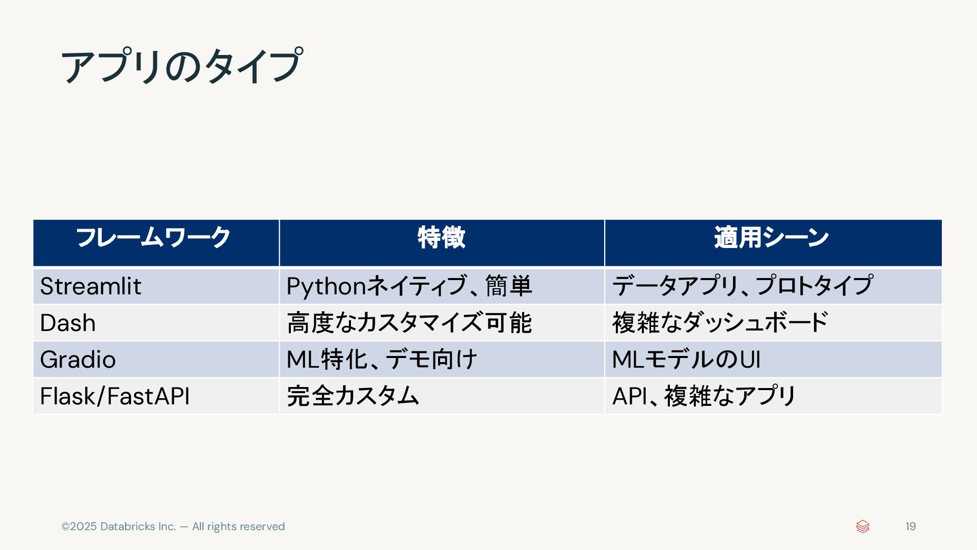 ©2025 Databricks Inc. — All rights reserved アプリのタイプ 19 フレームワーク
