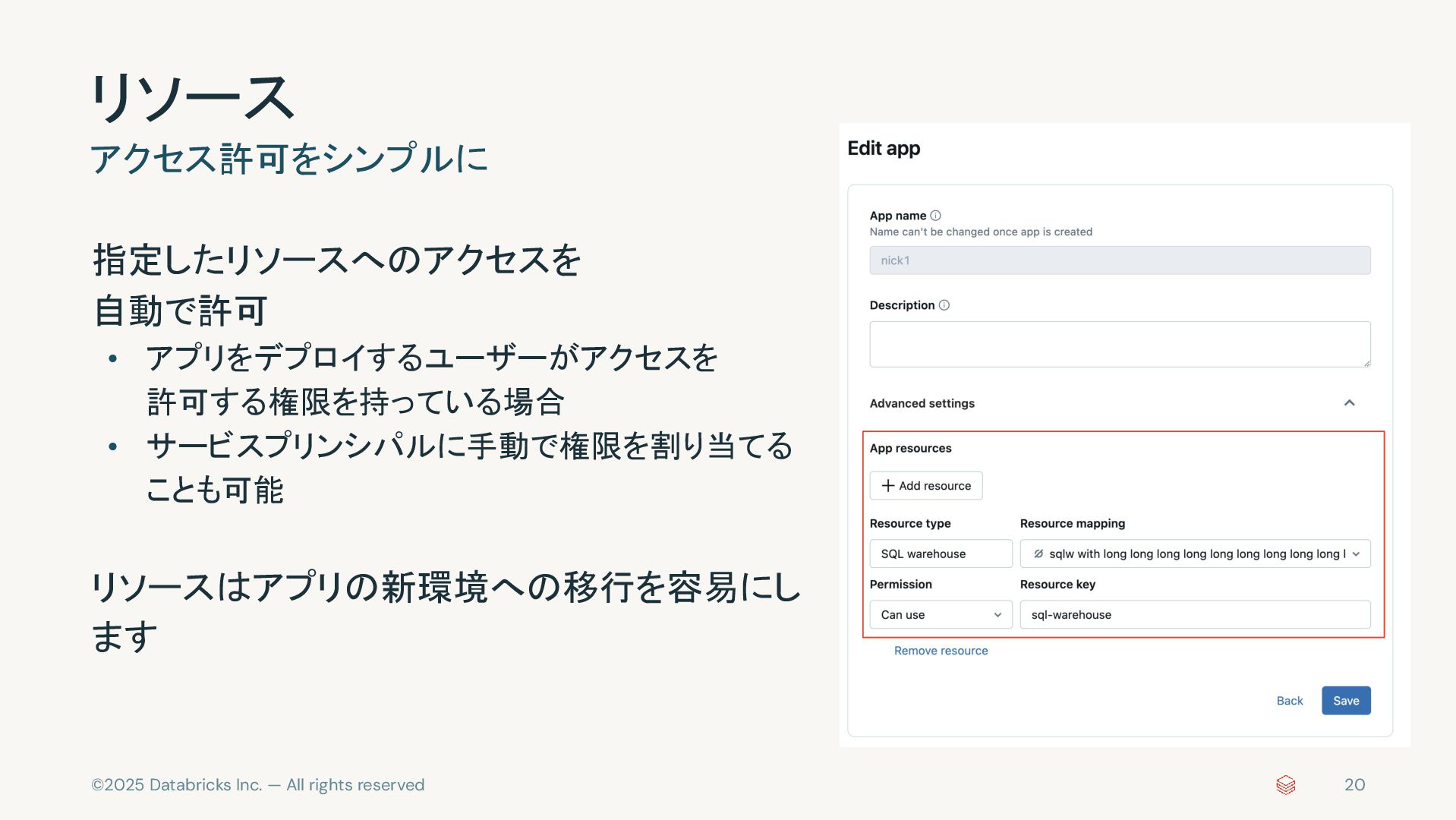 ©2025 Databricks Inc. — All rights reserved リソース 指定したリソースへのアクセスを 自動で許可