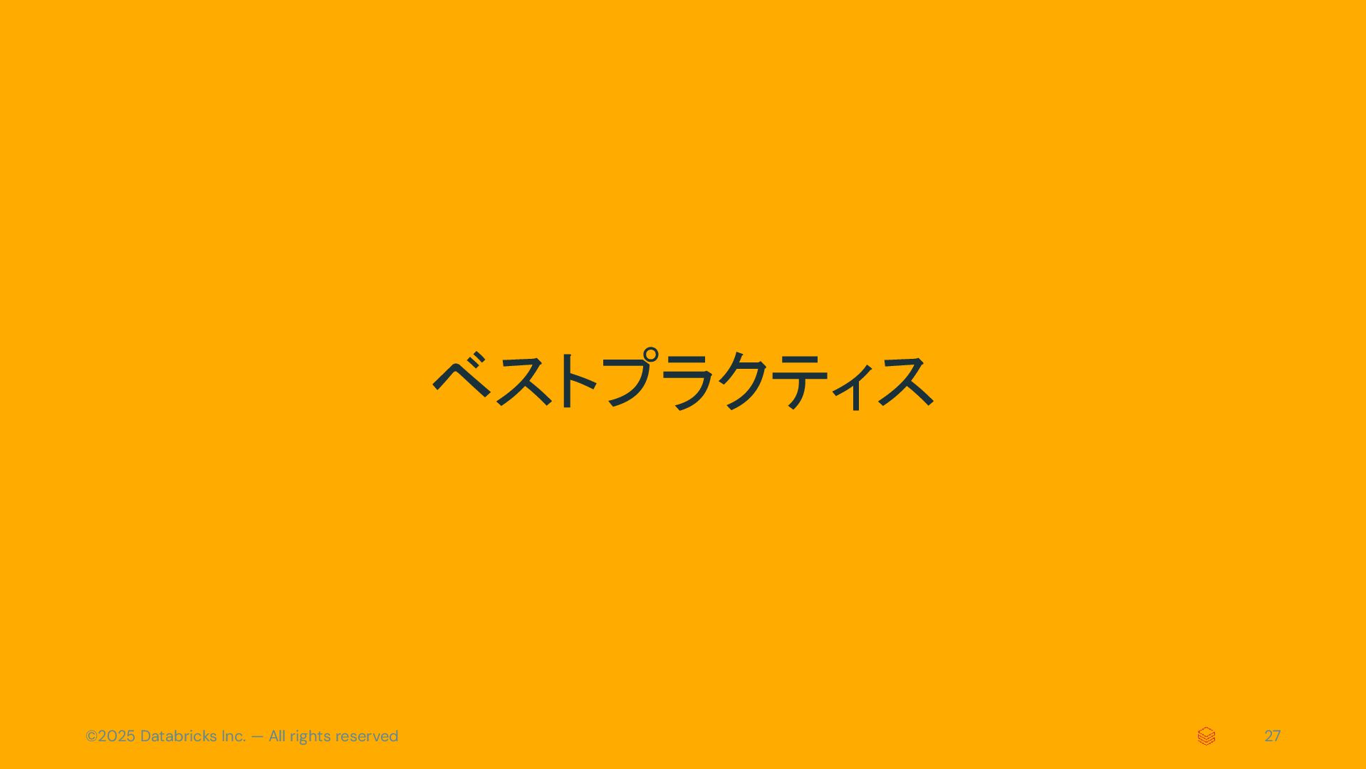 ©2025 Databricks Inc. — All rights reserved ベストプラクティス 27