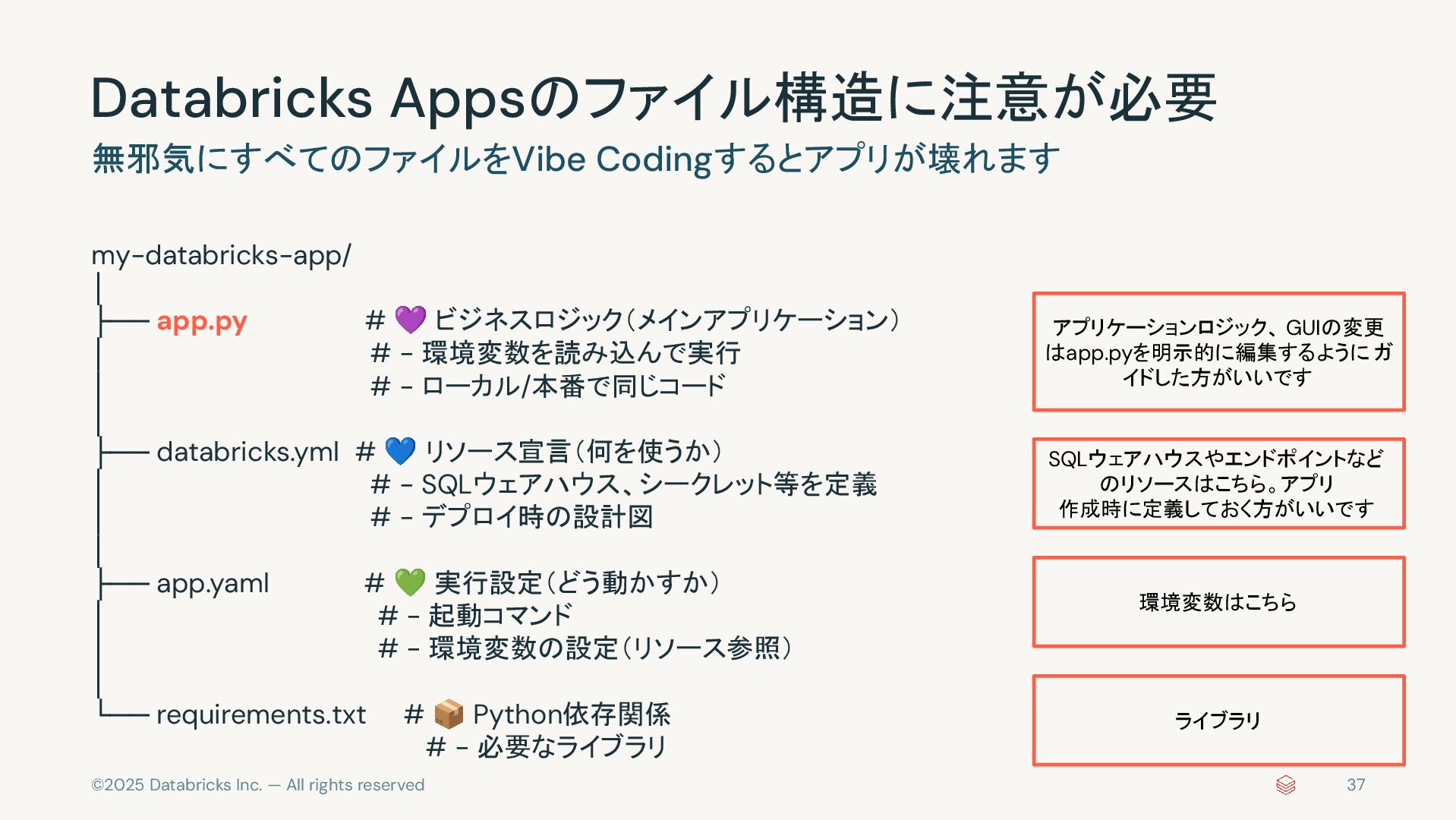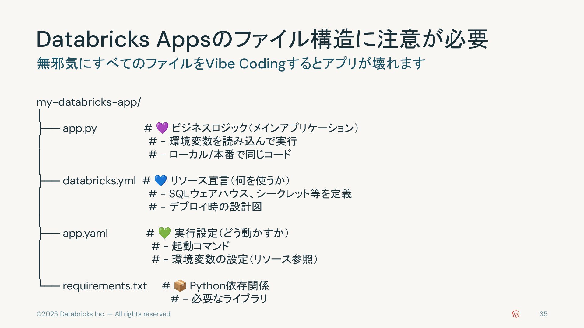 ©2025 Databricks Inc. — All rights reserved Databricks Appsのファイル構造に注意が必要 無邪気にすべてのファイルをVibe