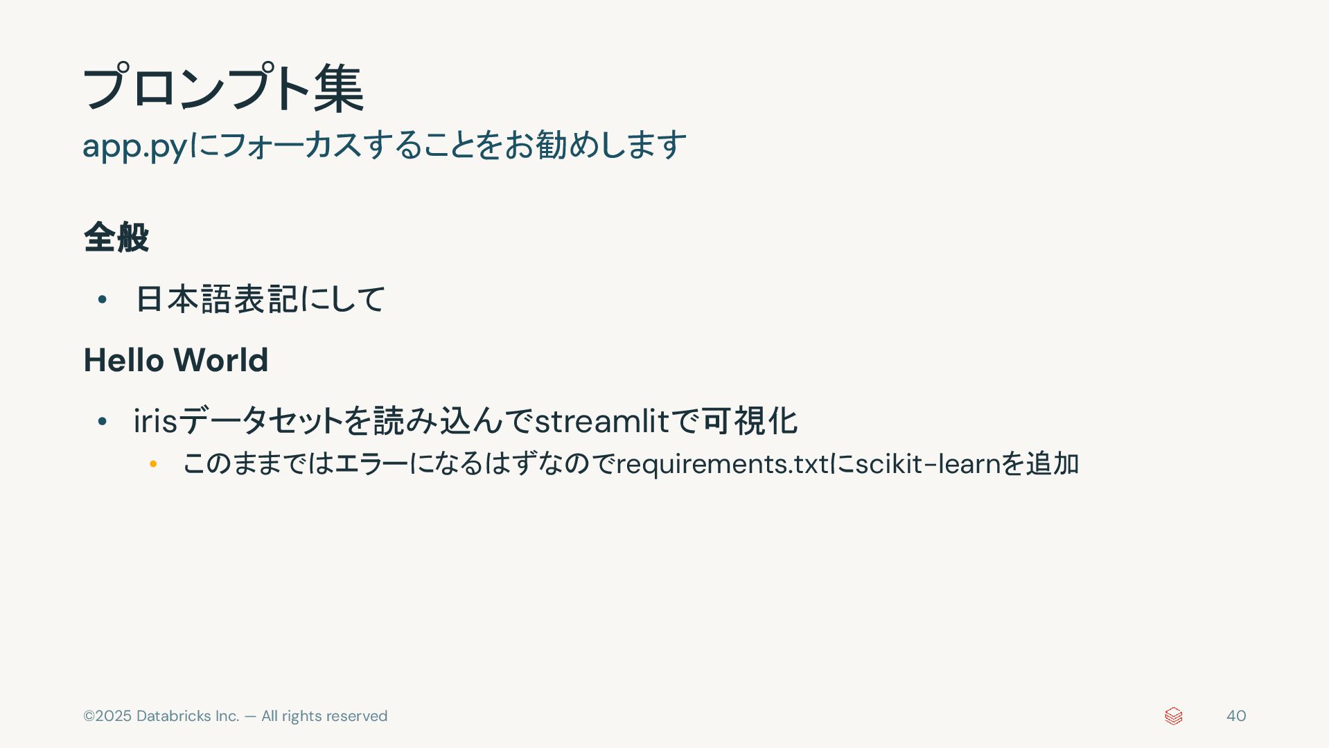 ©2025 Databricks Inc. — All rights reserved プロンプト集 40 全般